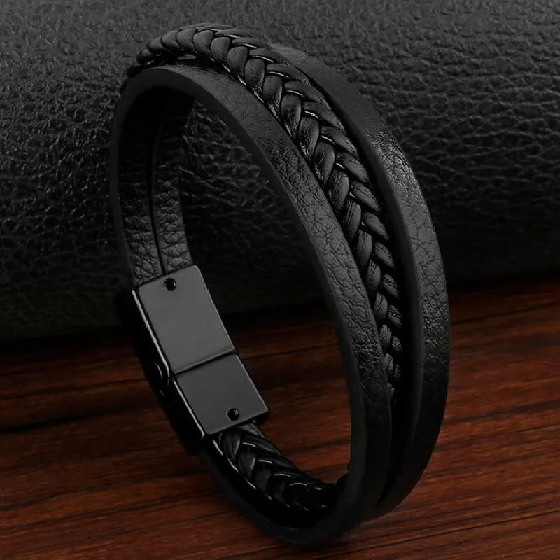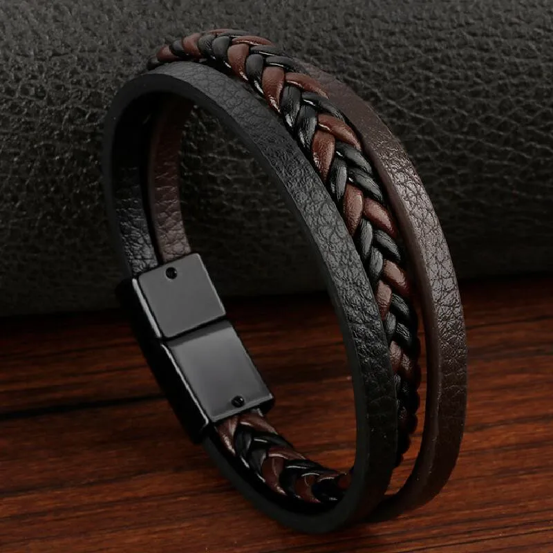 NIUYITID 2021 мужской Многослойный кожаный браслет магнитный черный...