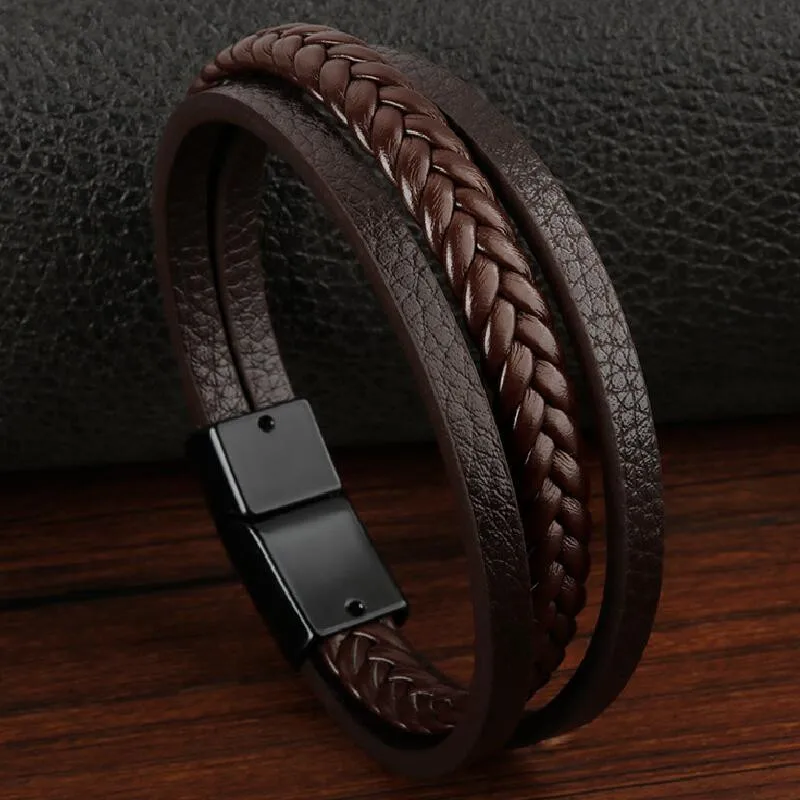 Коричневый кожаный браслет для мужчин кожаные браслеты с магнитной ...