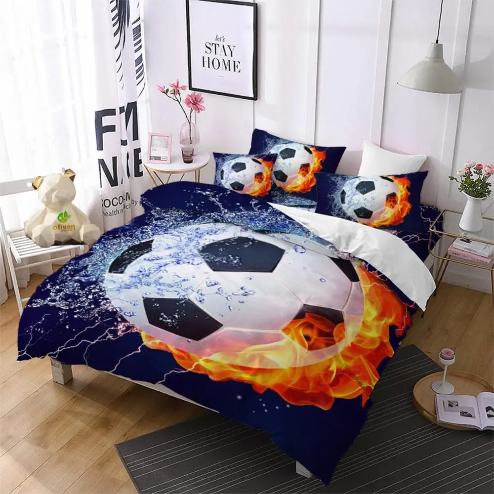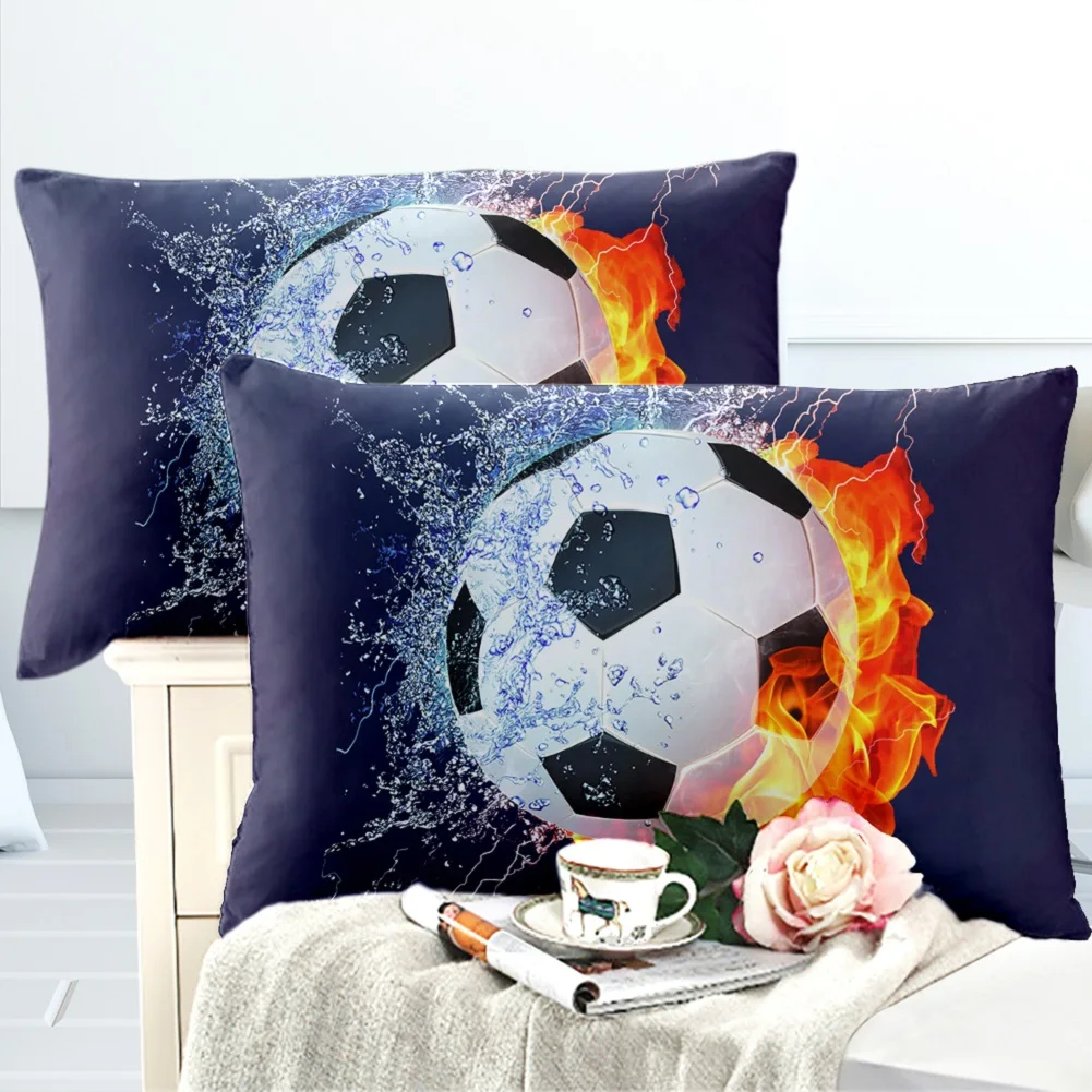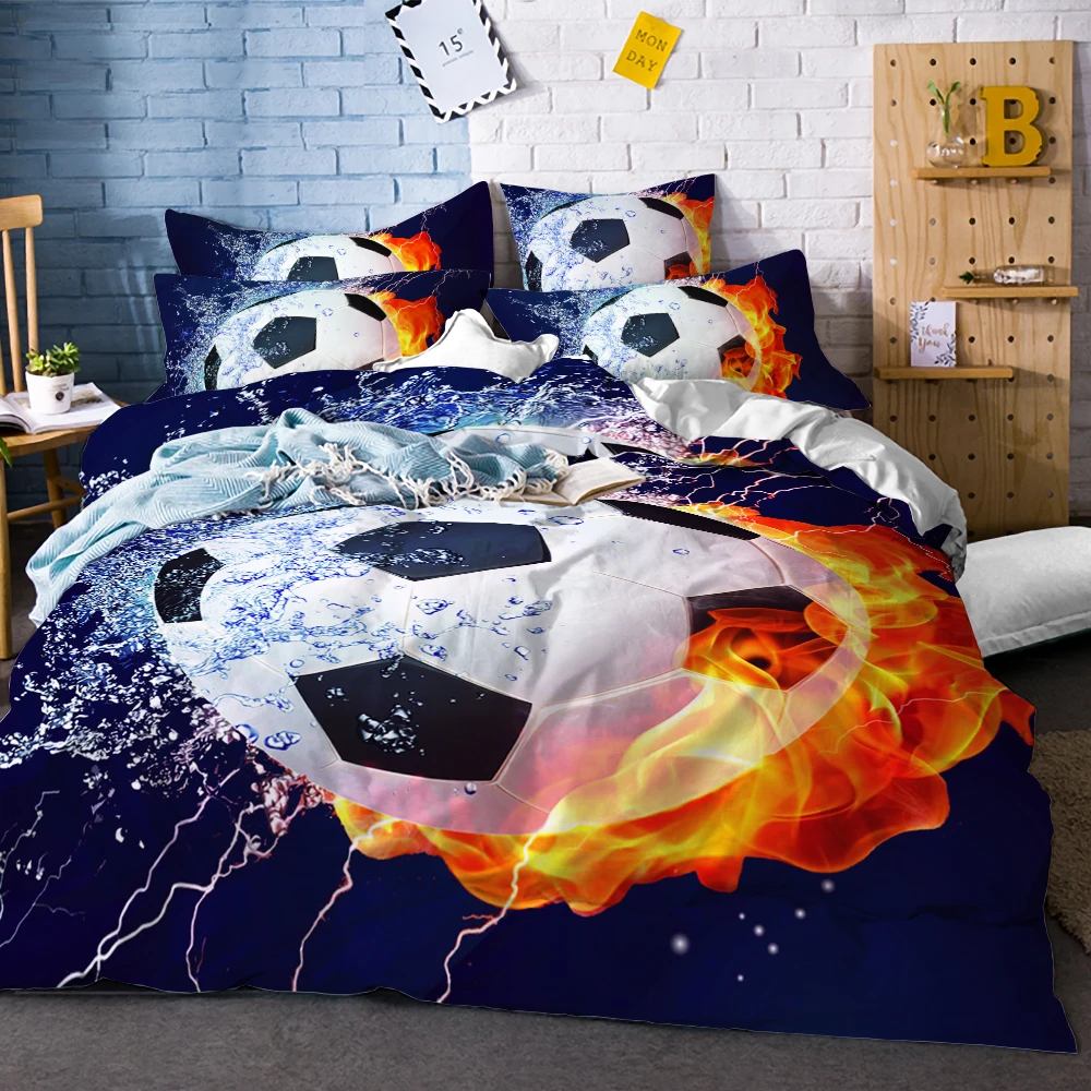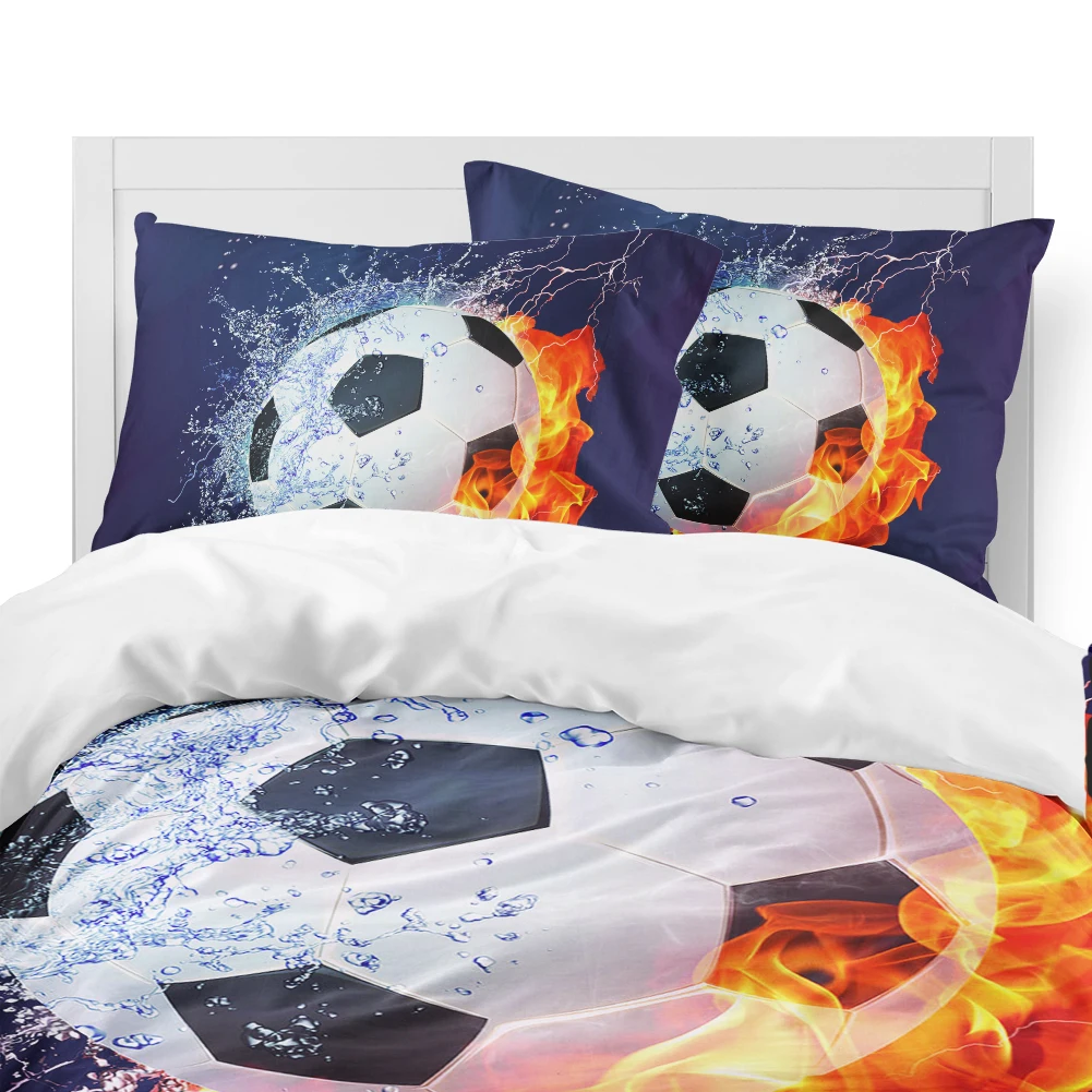 Комплект постельного белья с 3D-принтом горящего футбола, креативный спортивный пододеяльник с рисунком пламени, роскошный комплект постельного белья, наволочка (без простыней)
