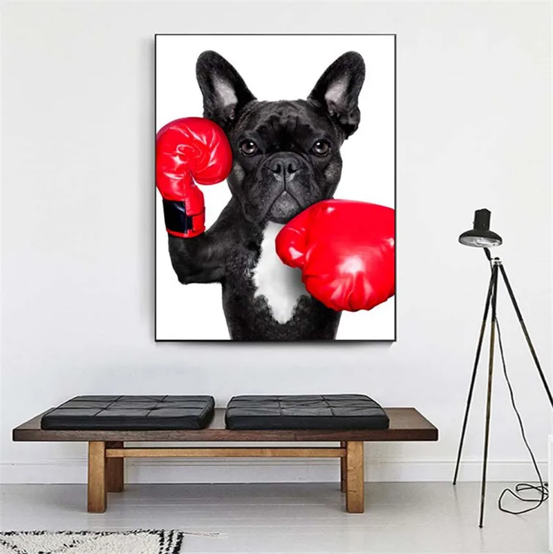Мультяшный щенок с боксерскими перчатками плакат настенный художественный Декор Картина Печать на холсте картины для детской комнаты скандинавский Декор для дома