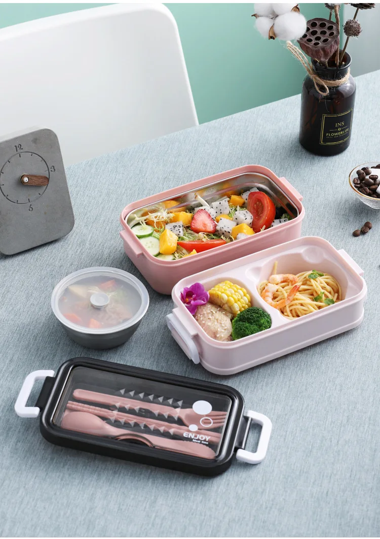 Ланч-бокс Bento Box для студентов, офисных работников, двухслойный Ланч-бокс с подогревом для микроволновой печи, контейнер для хранения еды с сумкой