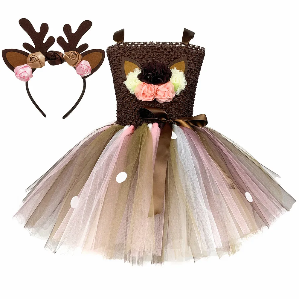 Костюм с мультяшным оленем с повязкой на голову, детская балетная пачка с цветами для девочек, платье для дня рождения, детское зимнее платье для вечевечерние НКИ, одежда