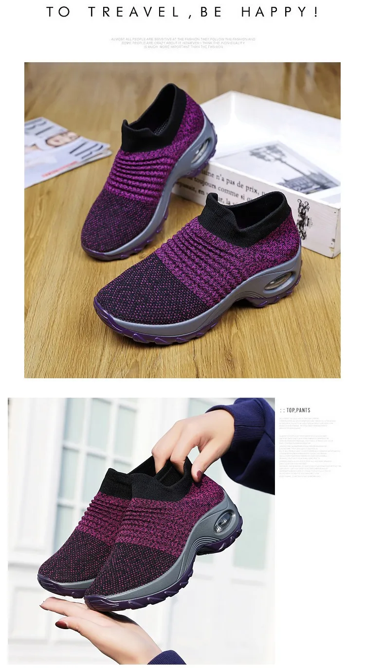 Кроссовки-носки женские без шнуровки, дышащие сетчатые теннисные туфли на платформе, плоская подошва, весна-осень