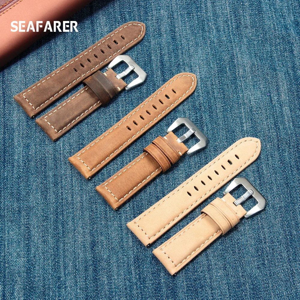 Ремешок для часов SEAFARER из натуральной кожи, черный браслет для наручных часов, аксессуары для часов, браслет с цельной металлической пряжкой, 22 мм 24 мм