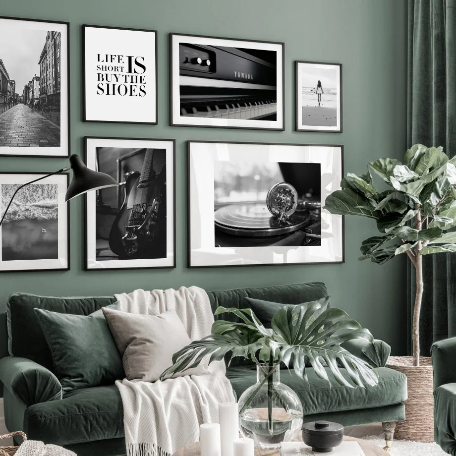Плакаты и принты в скандинавском стиле, проигрыватель записей, лента с изображением гитары, настенная живопись на холсте, винтажные настенные картины для гостиной, домашний декор