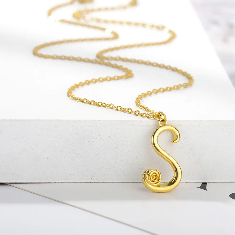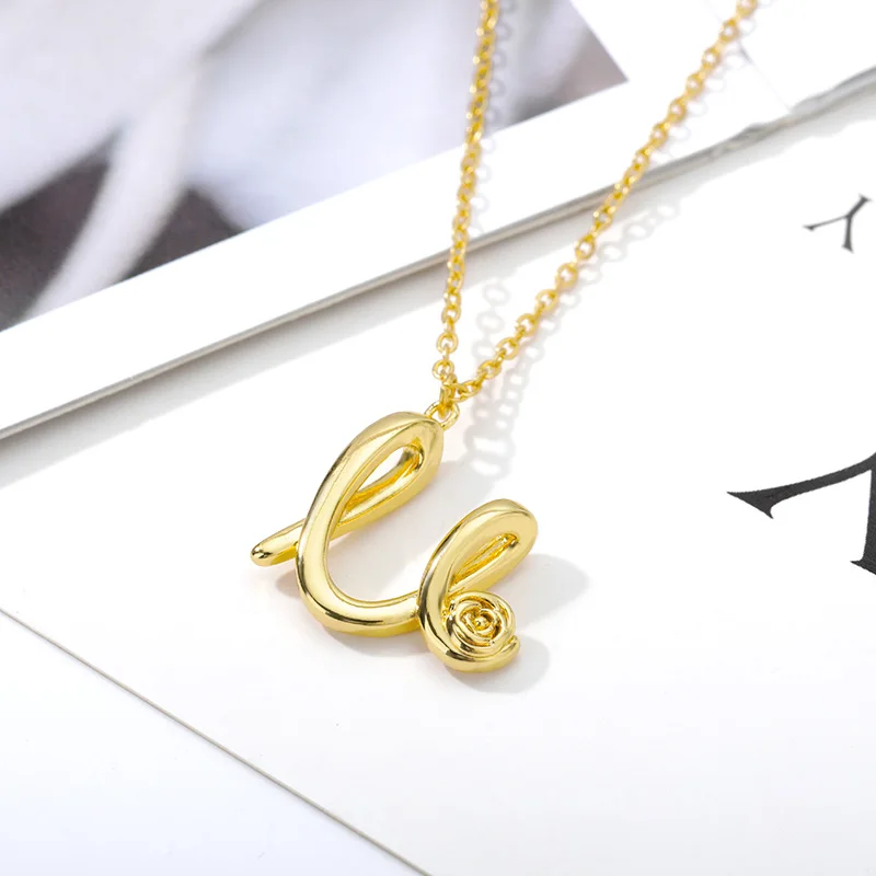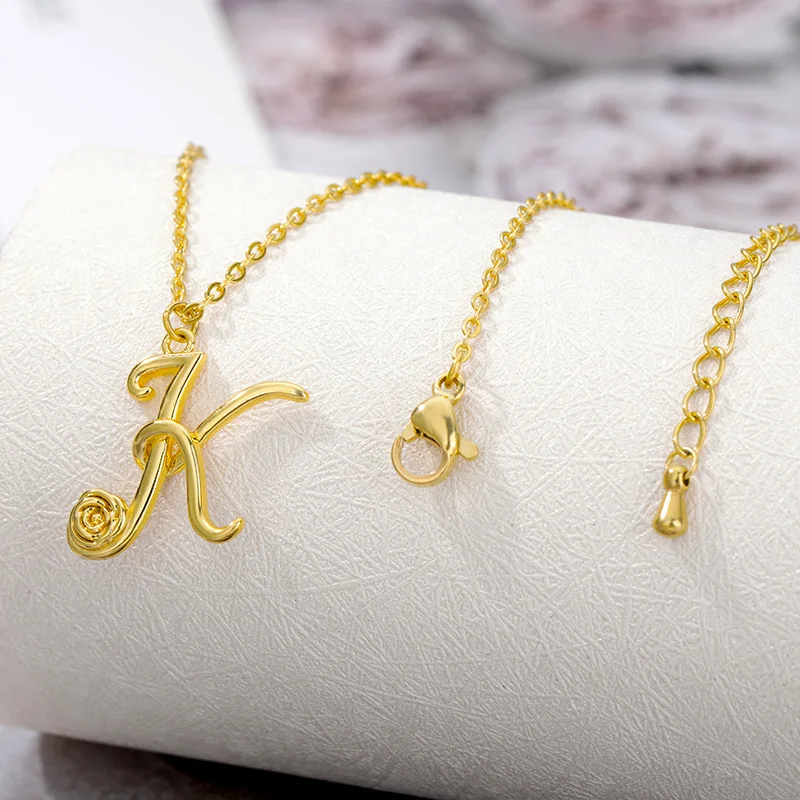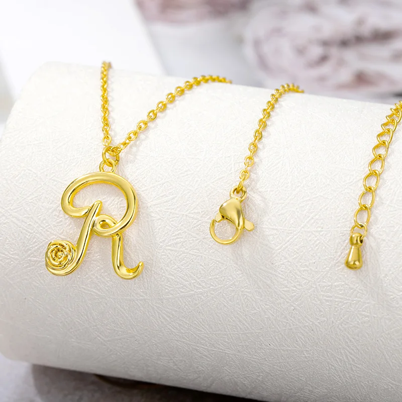 A-Z из нержавеющей стали с розами, ожерелье с буквенным принтом для женщин, кулон с цветком, ожерелье с буквенным принтом, подарок на день Святого Валентина