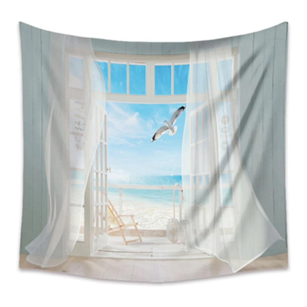 Гобелен для морем за окном настенный, украшение в стиле хиппи с изо...