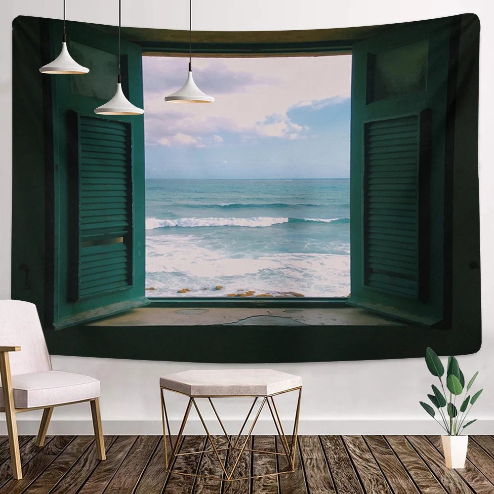 Окно океана гобелен с пейзажем хиппи Настенное подвесное покрывало ...