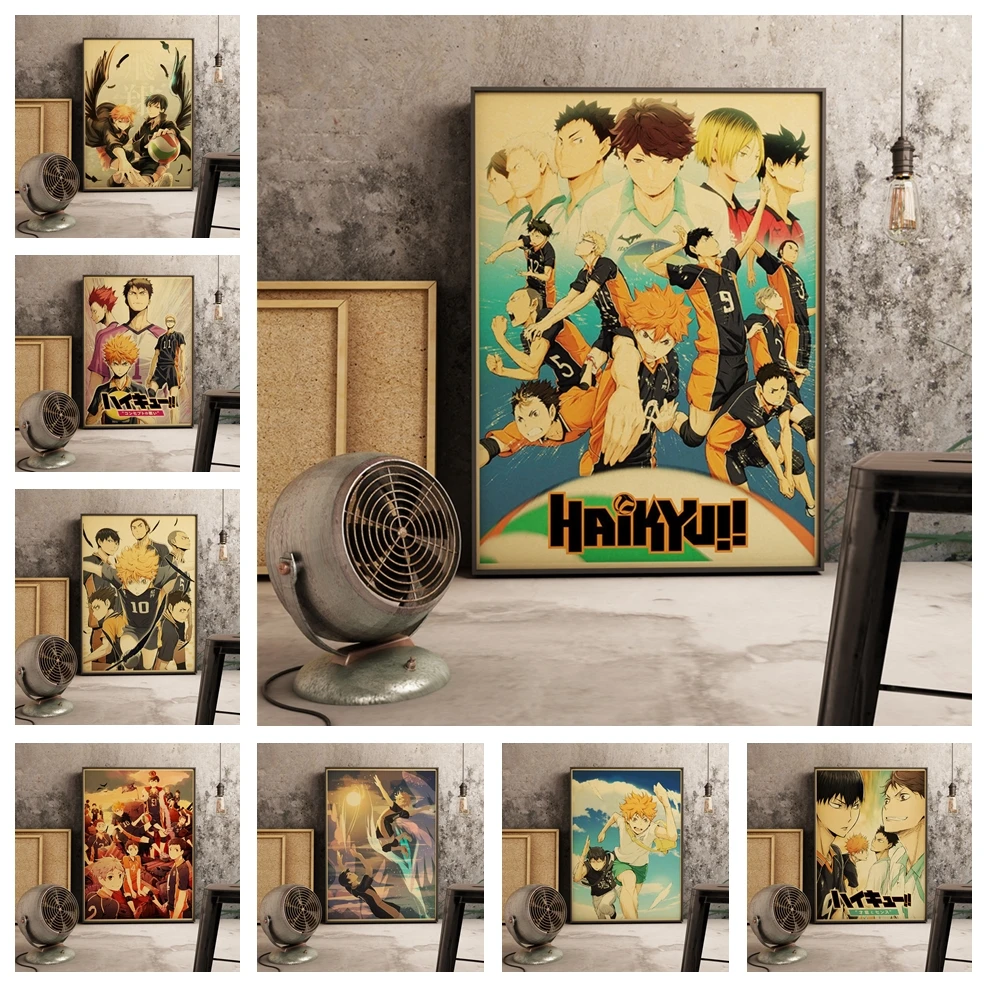 Постер из крафт-бумаги с изображением японского Аниме Haikyuu, волейбола, мальчика, ретро, для бара, кафе, детской комнаты, гостиной, Декор для дома