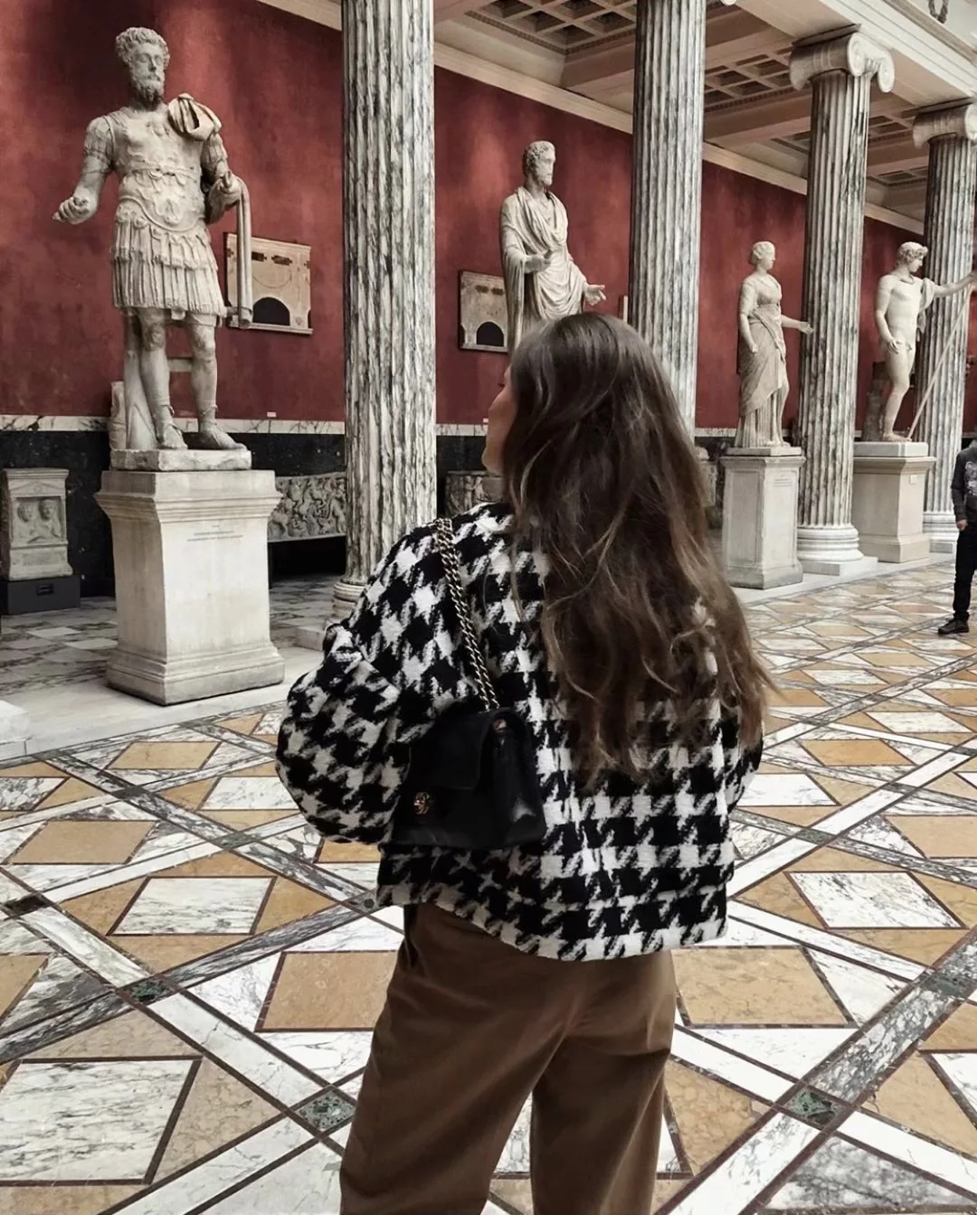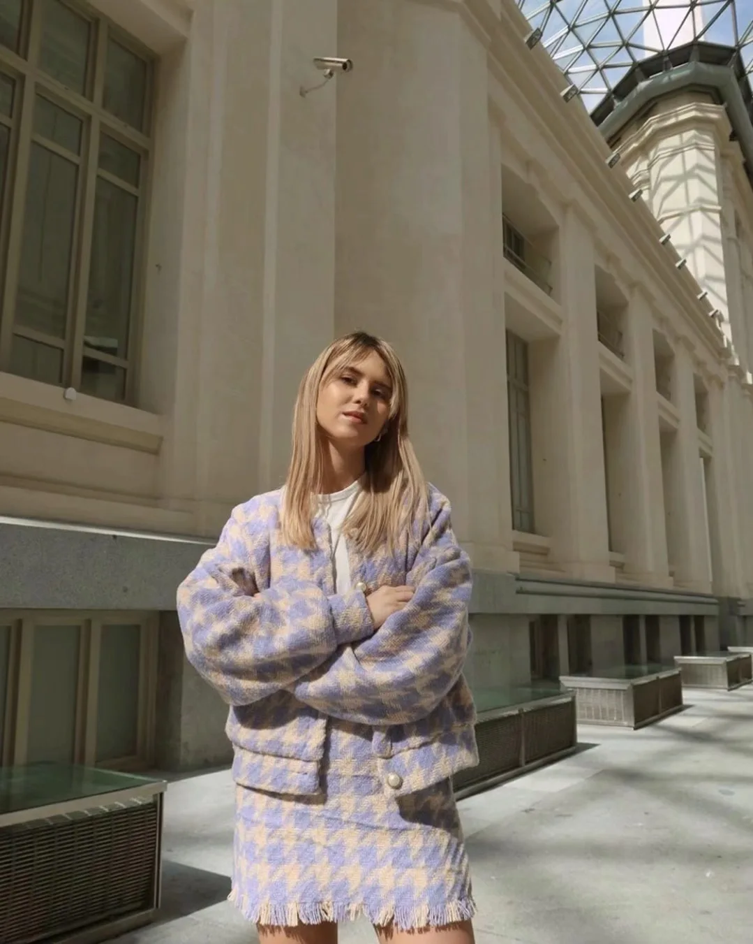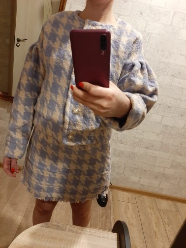 Женский винтажный костюм из 2 предметов, черный клетчатый блейзер в клетку с жемчужными пуговицами, короткая юбка с высокой талией и длинным рукавом