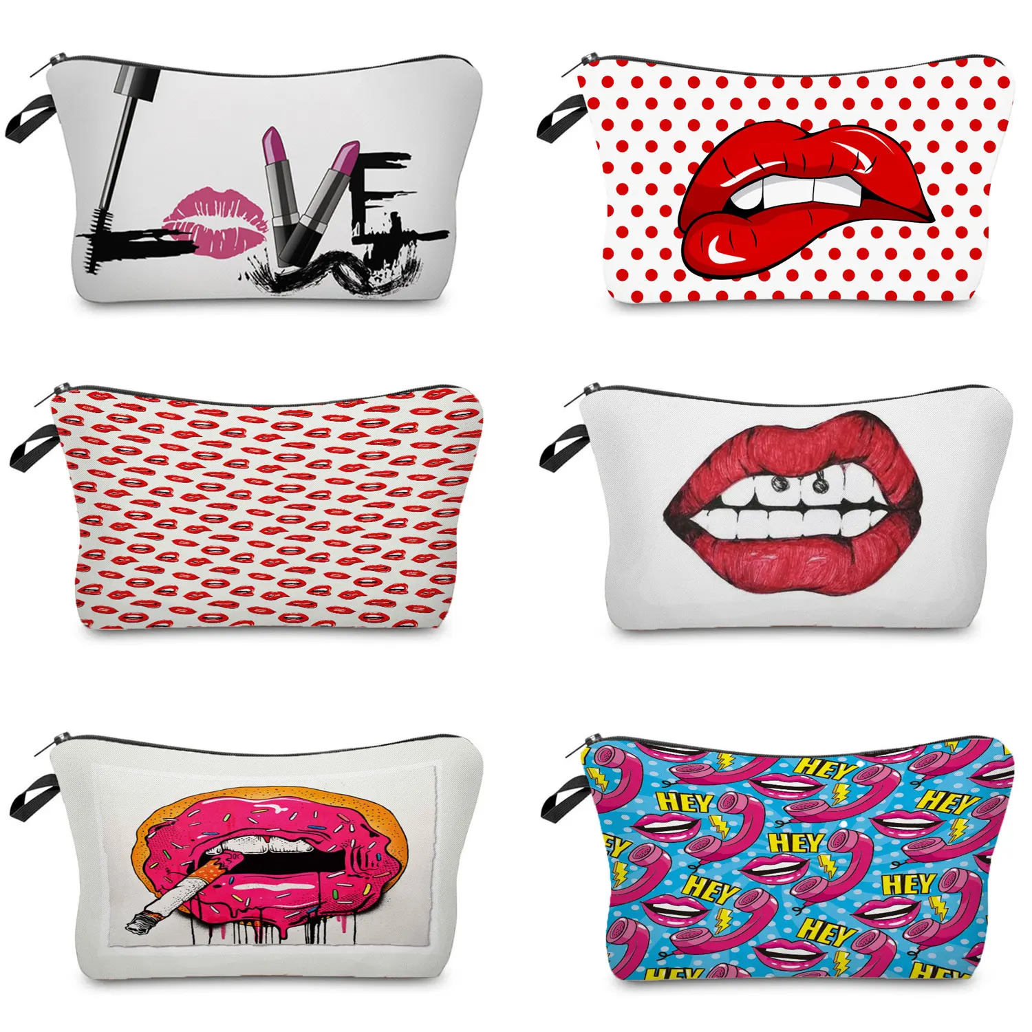 Сумка с принтом для девочек, красивая косметическая сумка-Органайзер, модный, с изображением красных губ, косметичка для путешествий, сумка для хранения, переносная сумка для женщин