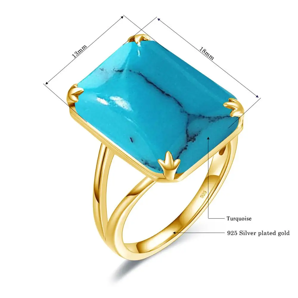 Бренд: SzjinaoТип камня: синтетический бирюзовыйФорма камня: прямоугольникМетод Создания камня: лабораторияМетод обработки камня: без обработкиТип металла: Настоящее 925 пробы серебро + позолотаЦвет металла: золотойУпаковка:1 * Серебряная полировальная ткань,1 * Изысканная Подарочная коробка,1 * Кольцо с драгоценным камнем