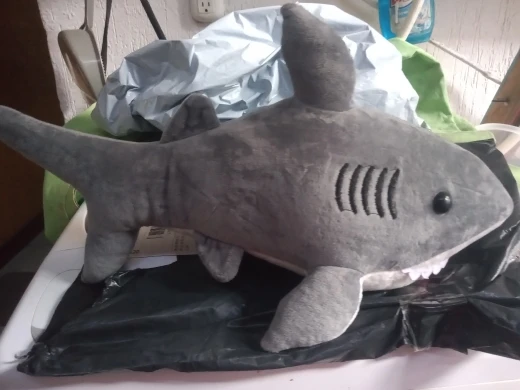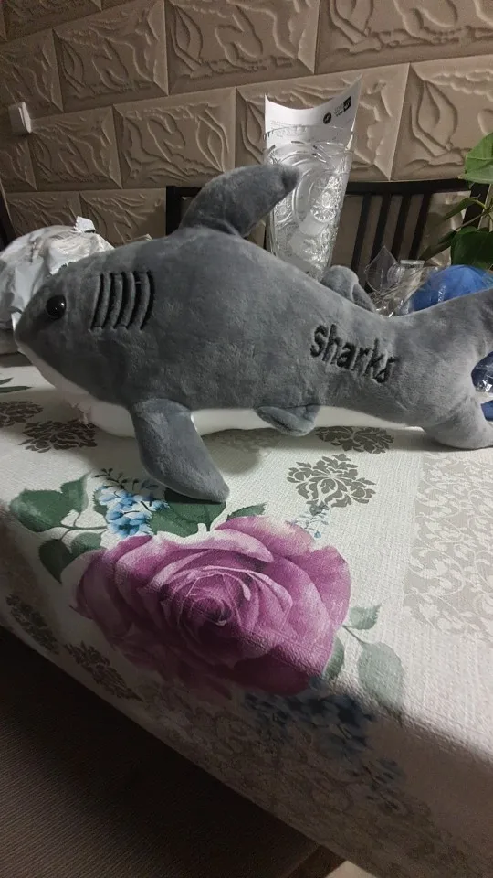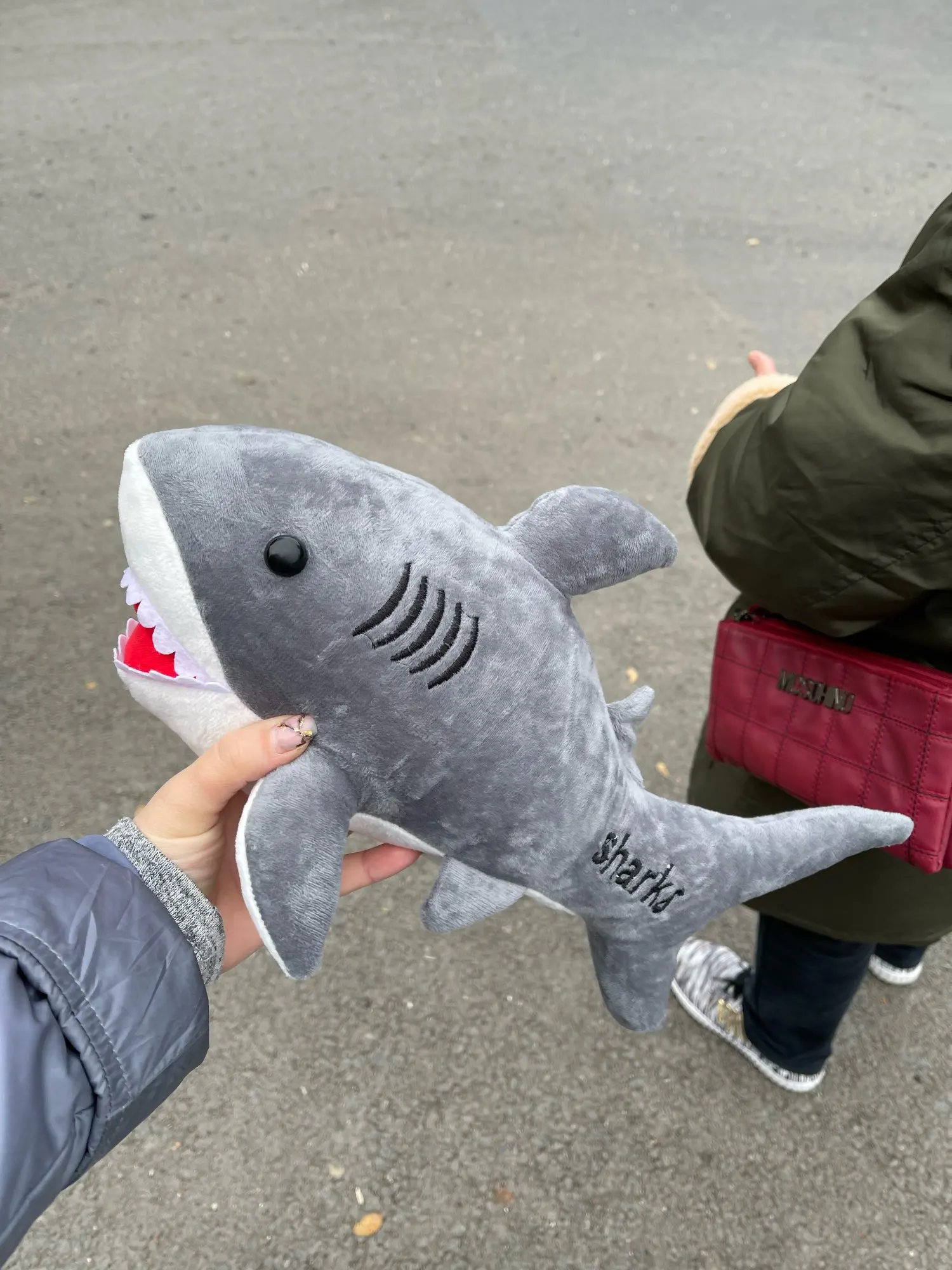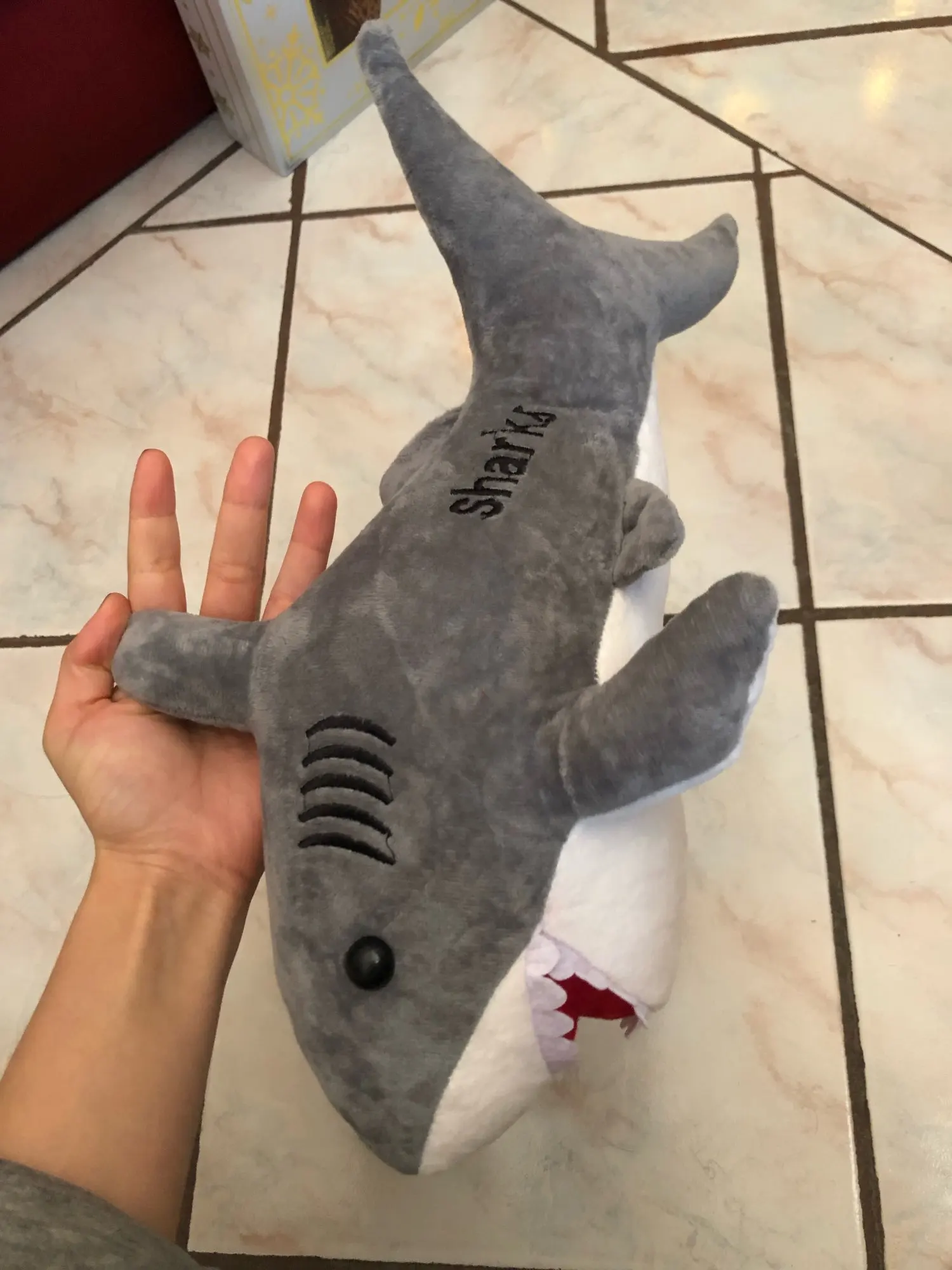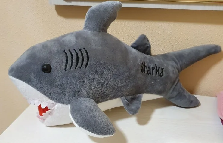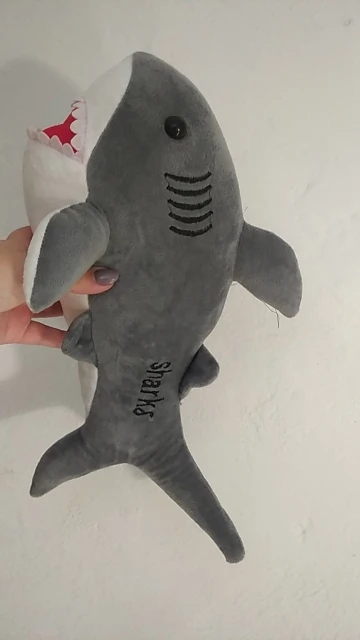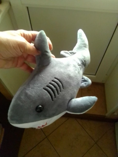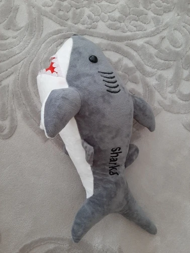 акула очень прикольная, мягкая, хорошо прошита. с вышитой надписью на хвостике. не порадовало, что была запакована только в почтовый пакет, без дополнительной пленки. но этот вопрос мы с продавцом решили. однозначно спасибо, товар стоит своих денег!