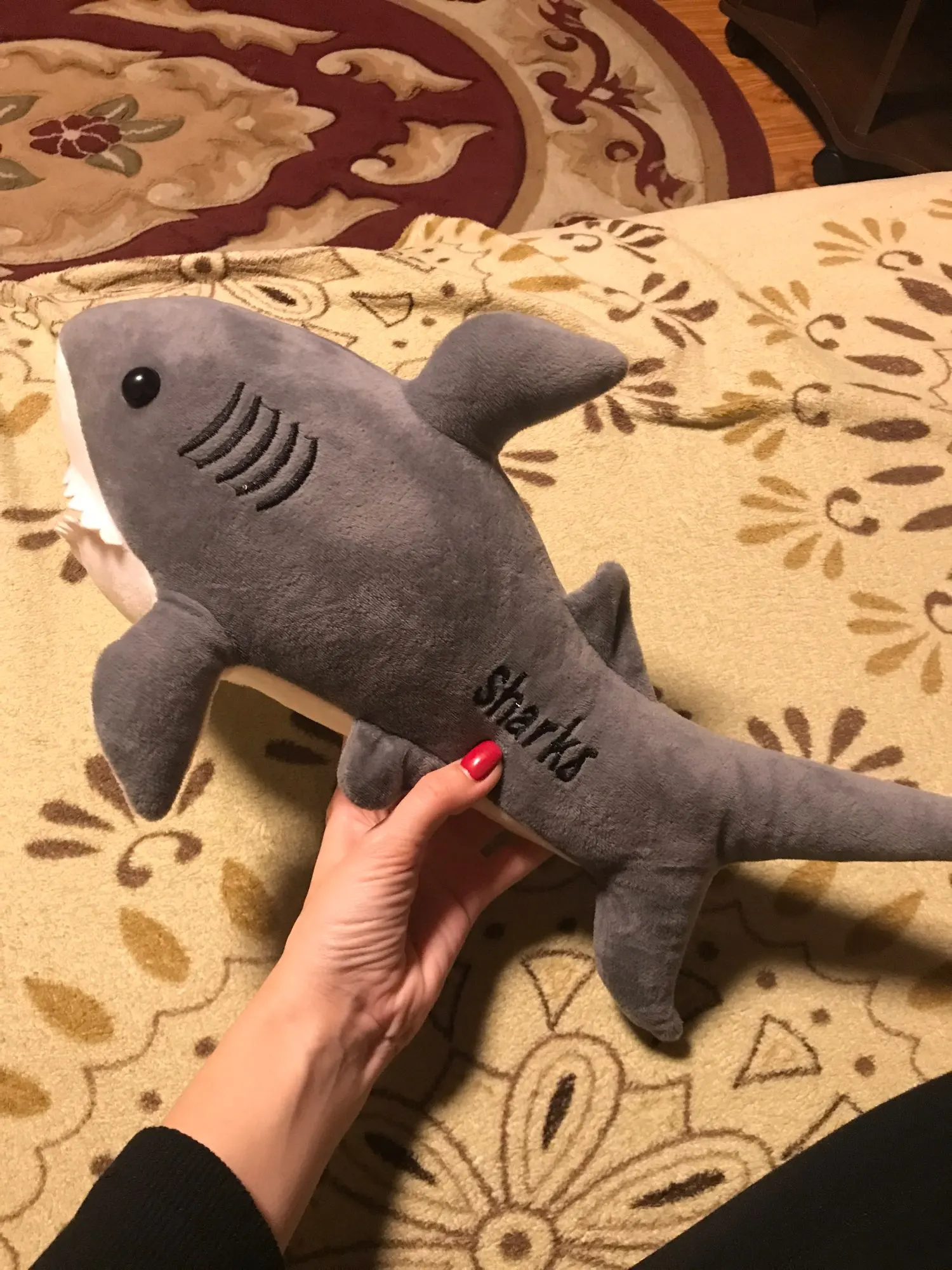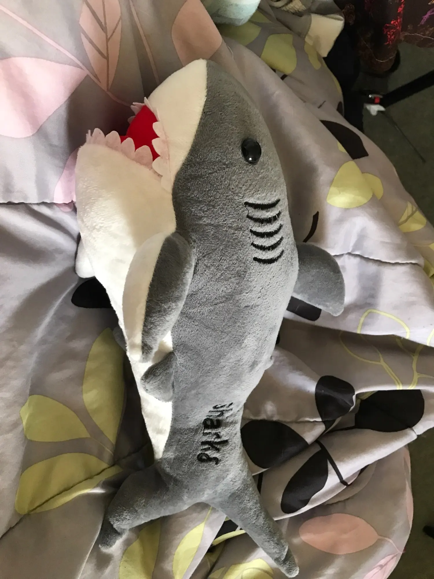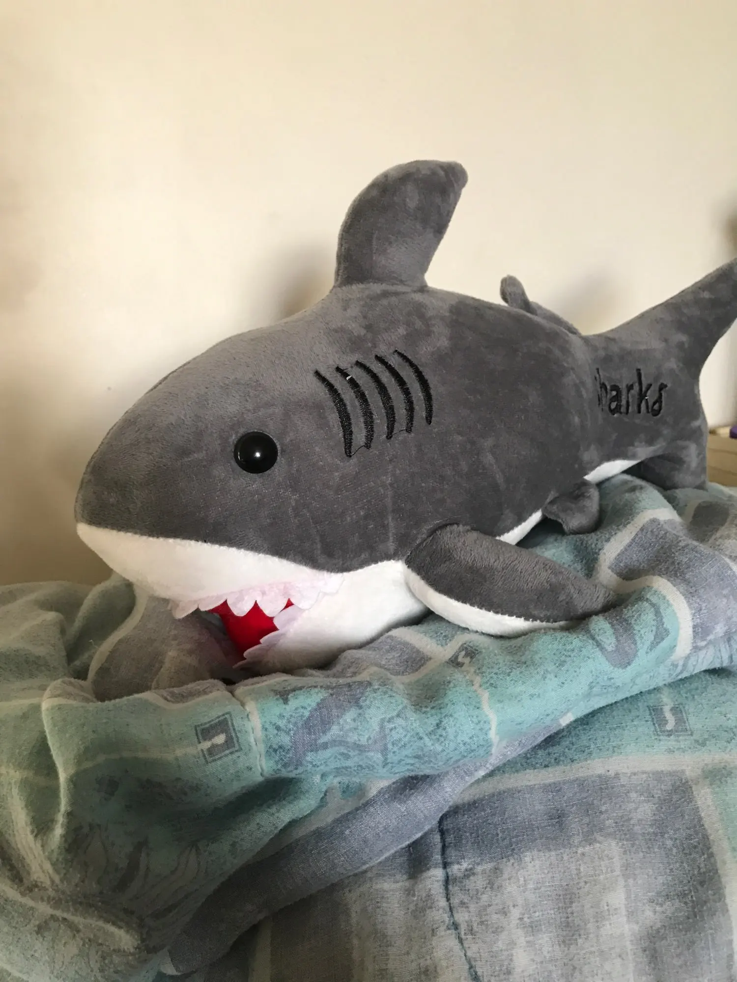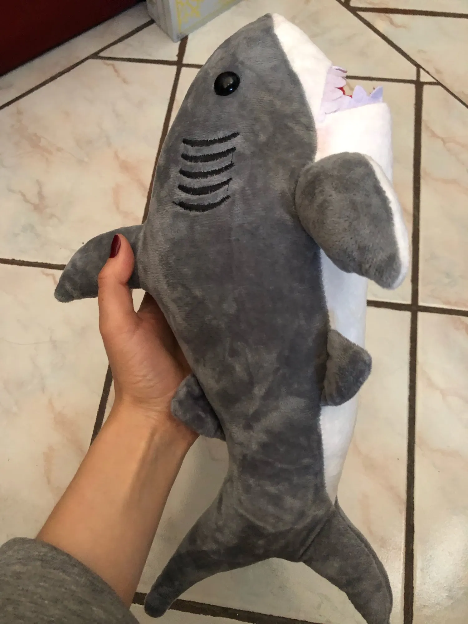 акула очень прикольная, мягкая, хорошо прошита. с вышитой надписью на хвостике. не порадовало, что была запакована только в почтовый пакет, без дополнительной пленки. но этот вопрос мы с продавцом решили. однозначно спасибо, товар стоит своих денег!