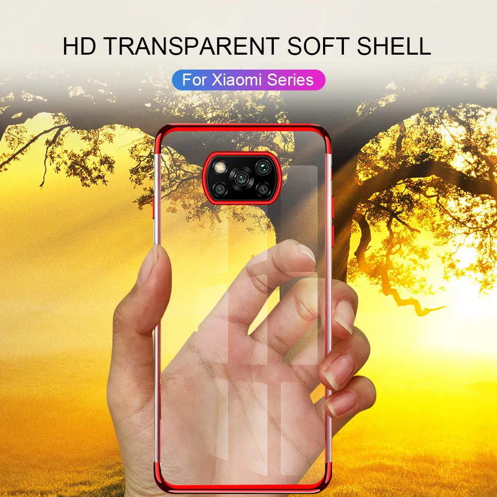 PocoX3 чехол тпу гальванический бампер прозрачная задняя крышка для...