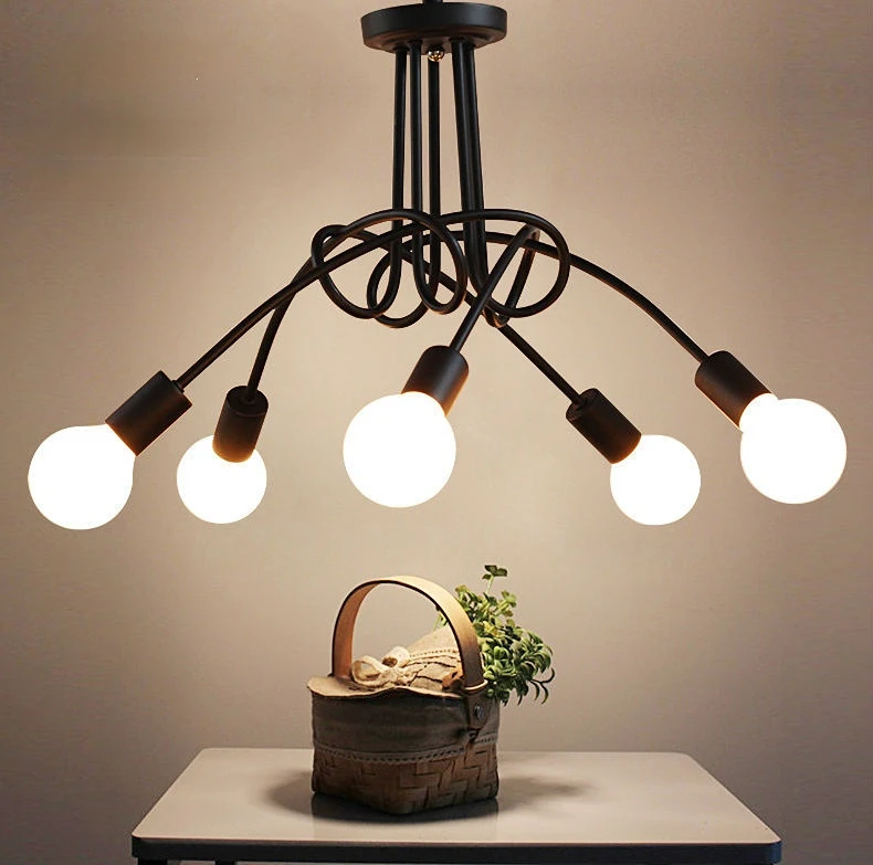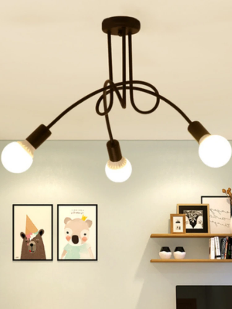 Современный потолочный светильник из кованого железа в стиле ретро, простые креативные изогнутые осветительные приборы для гостиной и детской комнаты