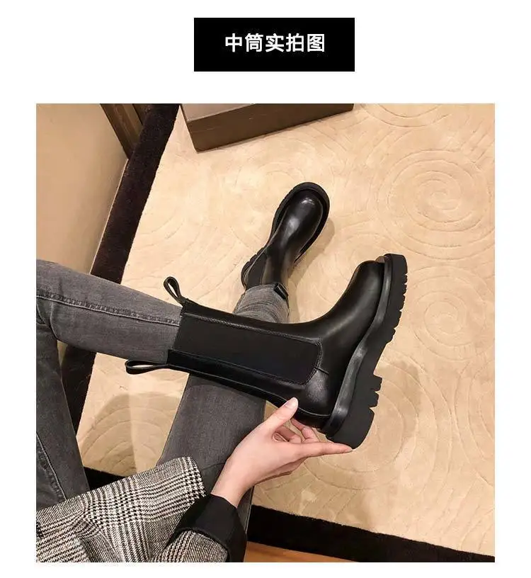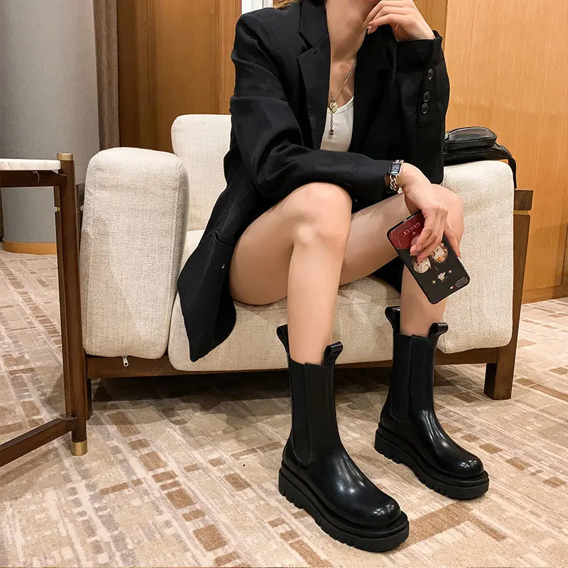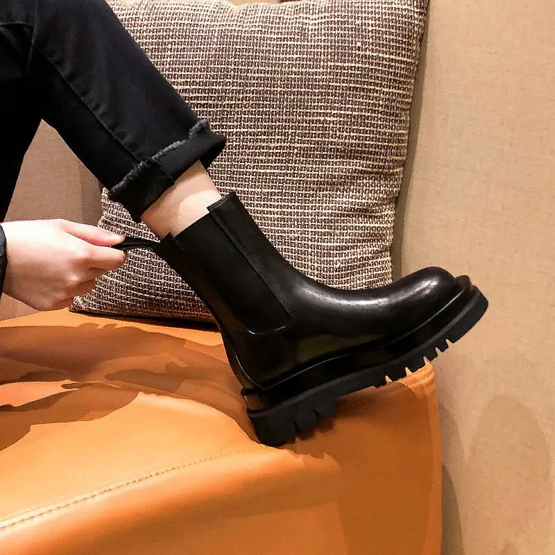 Женские ботинки челси из искусственной кожи, зимние ботинки на массивной платформе, черные, с плюшевой подкладкой, 2020