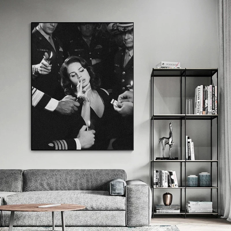 Домашний декор, настенная Картина на холсте, Постер Ланы Дель Рей, черно-белые картины, плакаты, Модульная картина для спальни