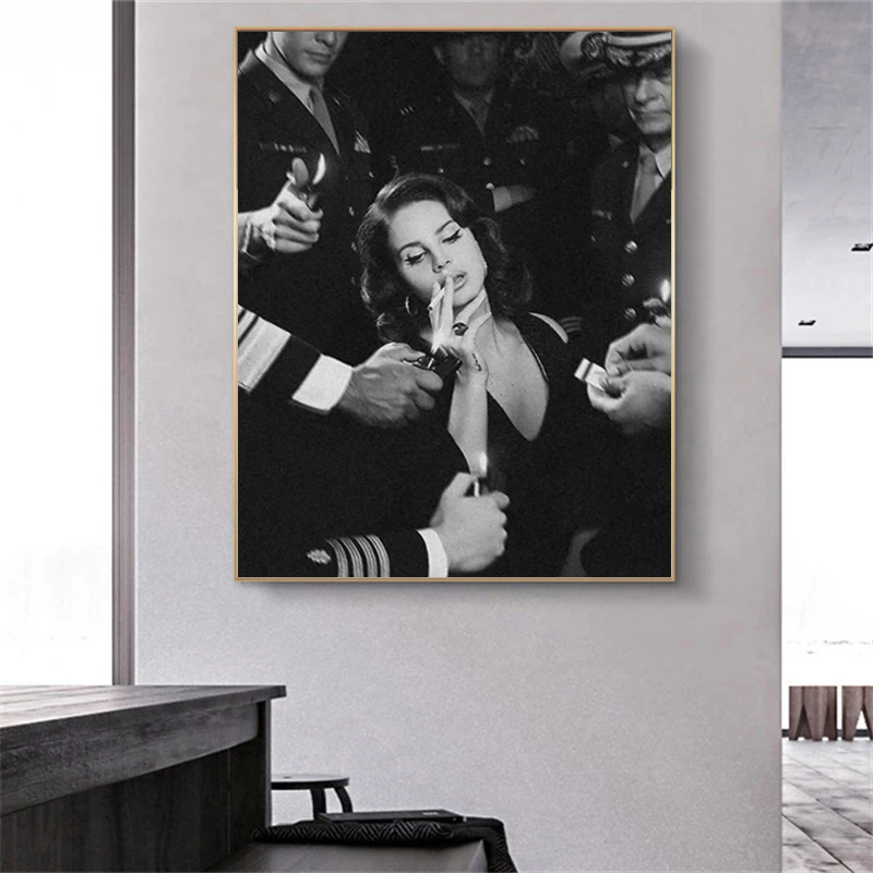 Настенная Картина на холсте, Постер Ланы Дель Рей, черно-белые карт...