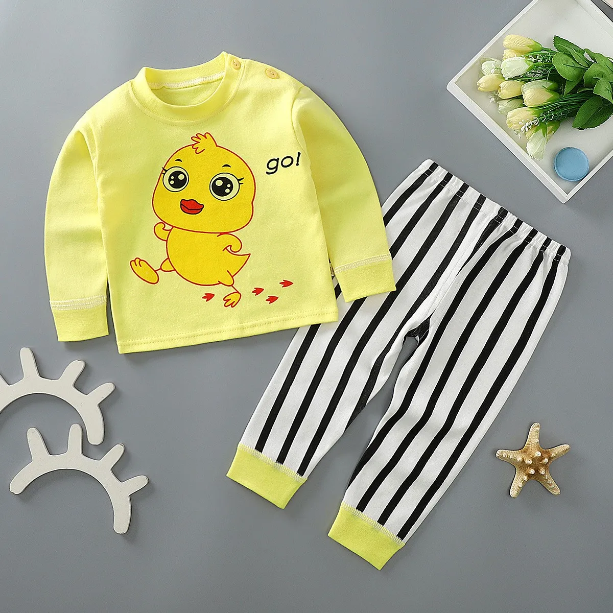 Осеннее Новое поступление, комплект нижнего белья для детей, комплект домашней одежды из чистого хлопка для новорожденных мальчиков и девочек, пижама с круглым вырезом