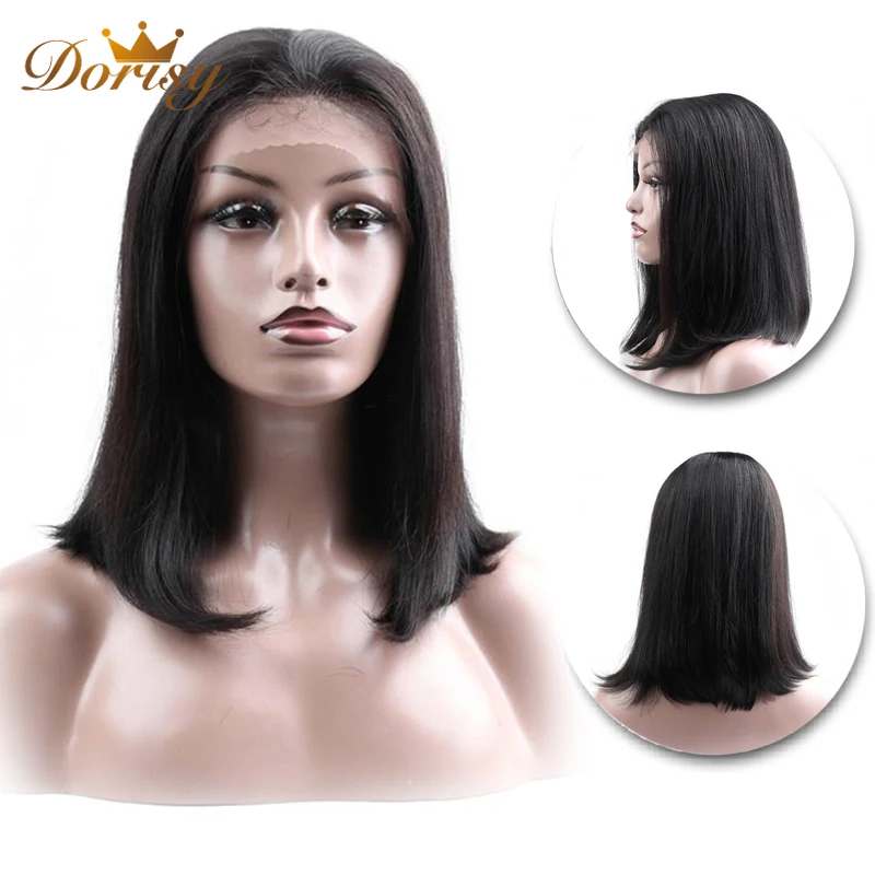 Короткие парики боб, парики из человеческих волос на сетке спереди для черных женщин, перуанские прямые человеческие волосы, парик натурального черного цвета, неповрежденные волосы Dorisy