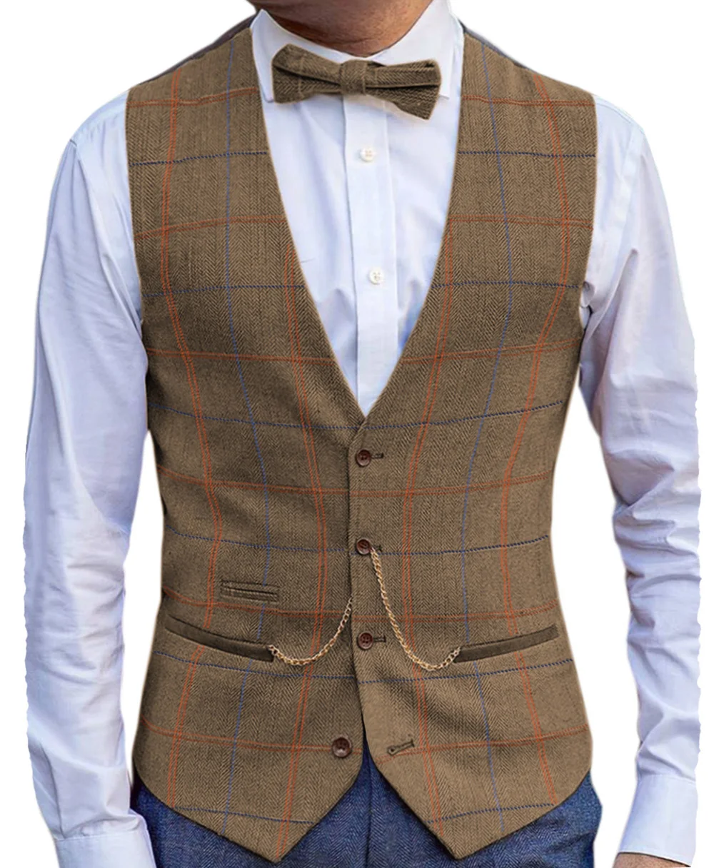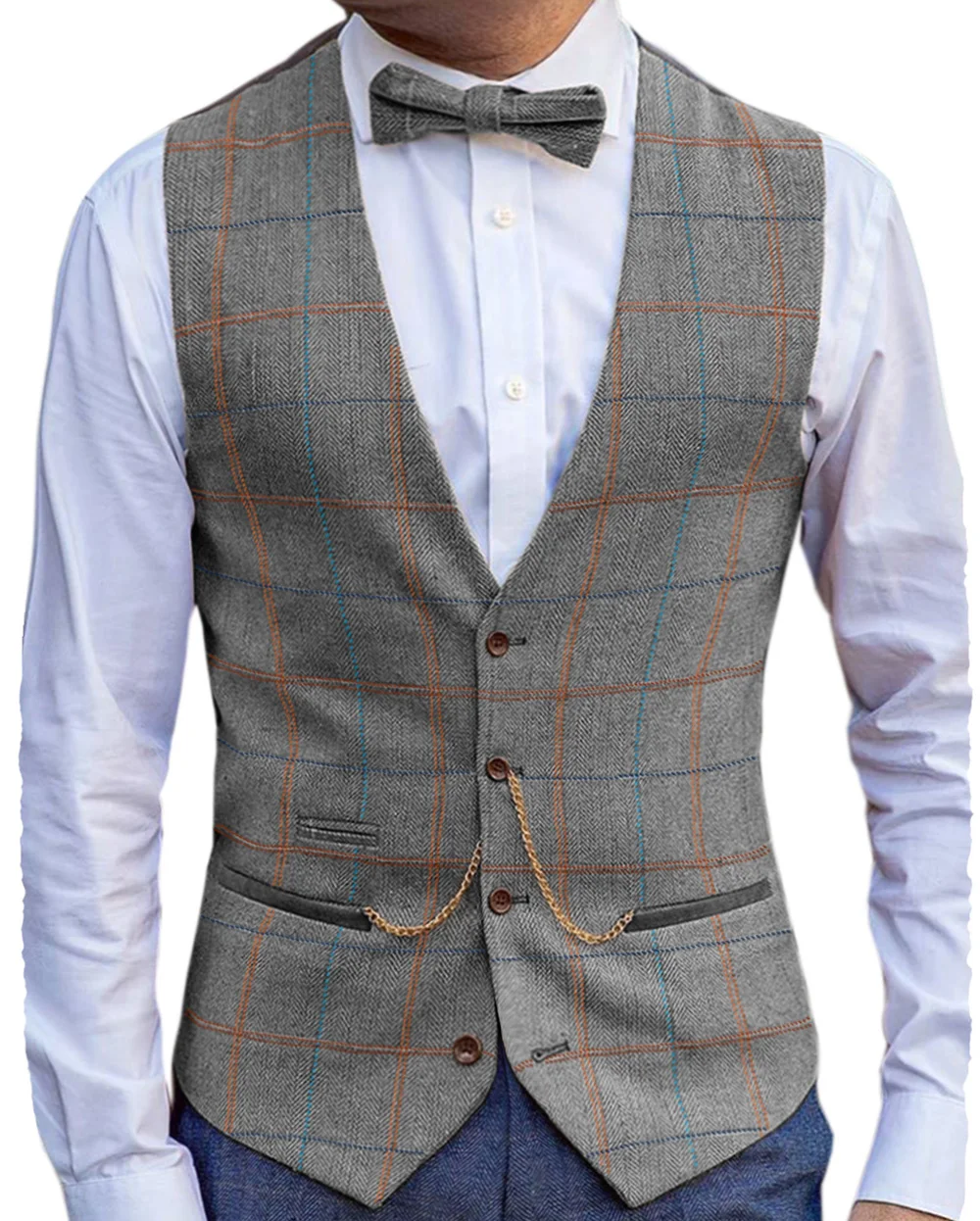 Новый клетчатый костюм, жилет для мужчин, шерстяной твидовый жилет,...