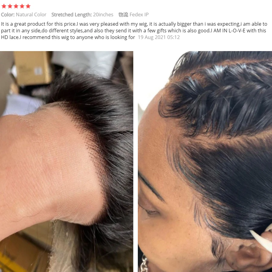 I don’t usually give reviews for my purchases and this is actually my first time buying hair from AliExpress but this frontal definitely deserves a review. This frontal is really good- the knots at the front are small and it is definitely real HD lace. Also, I measured it and I can confirm that it is true to length. I’m really happy with this purchase and I will definitely be getting many more frontals from here. The frontal was shipped in 8 days and then delivered in a week, but honestly it was worth the wait. If you are considering buying this frontal, you should definitely go with the purchase because it is amazing quality and the seller is also super responsive and helpful.