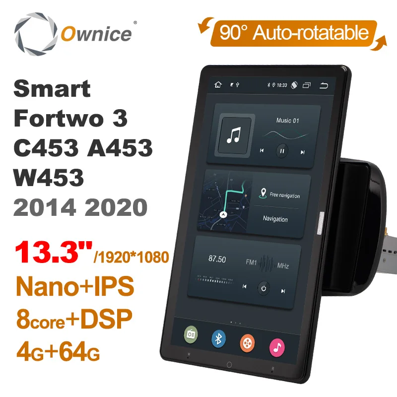 13,3 "1920*1080 Android 10,0 автомобиль радио для Mercedes-Benz Smart Fortwo 3 2014 2020 GPS Авто Аудио Системы плеер автоматический вращающийся