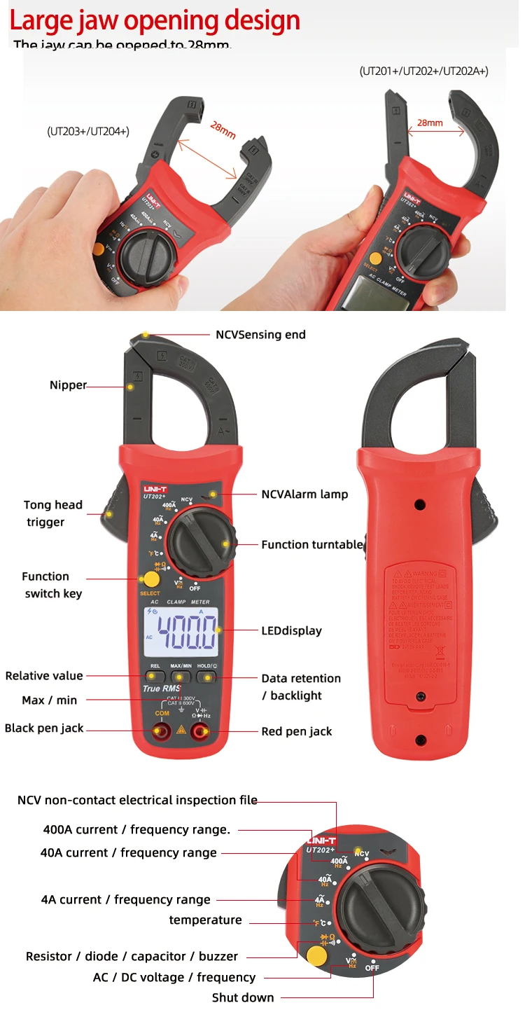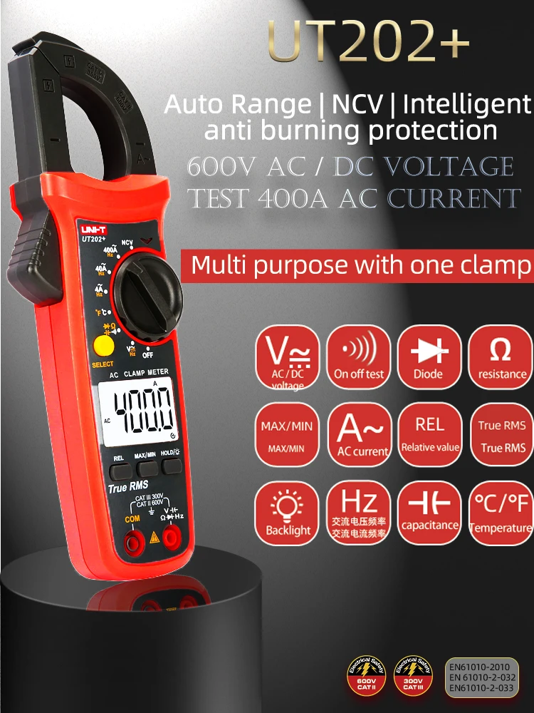 Цифровой мультиметр-зажим для измерения постоянного и переменного тока, 400-600A