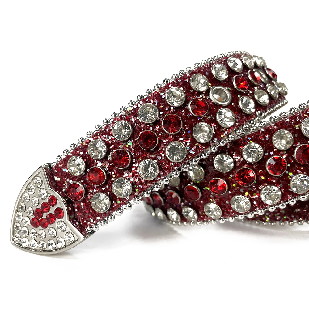 Популярные красные женские туфли в Западном ковбойском стиле Стразы Bling ремни с ремешком; Модные женские красочные шипованные модные пояс Cinto De Strass Ceinture Femme