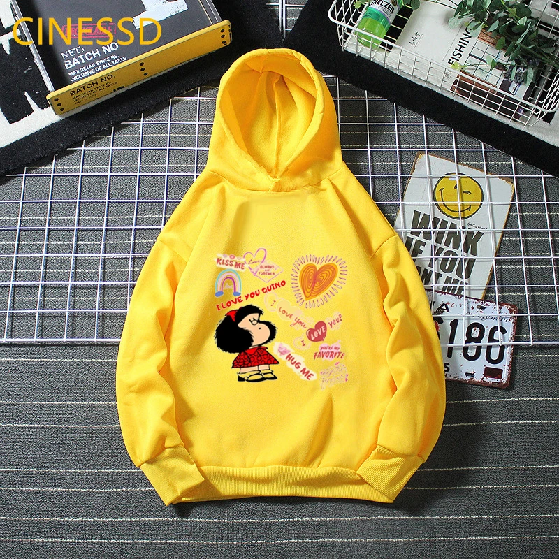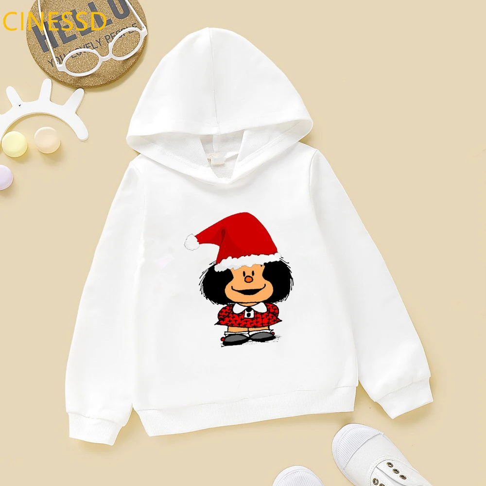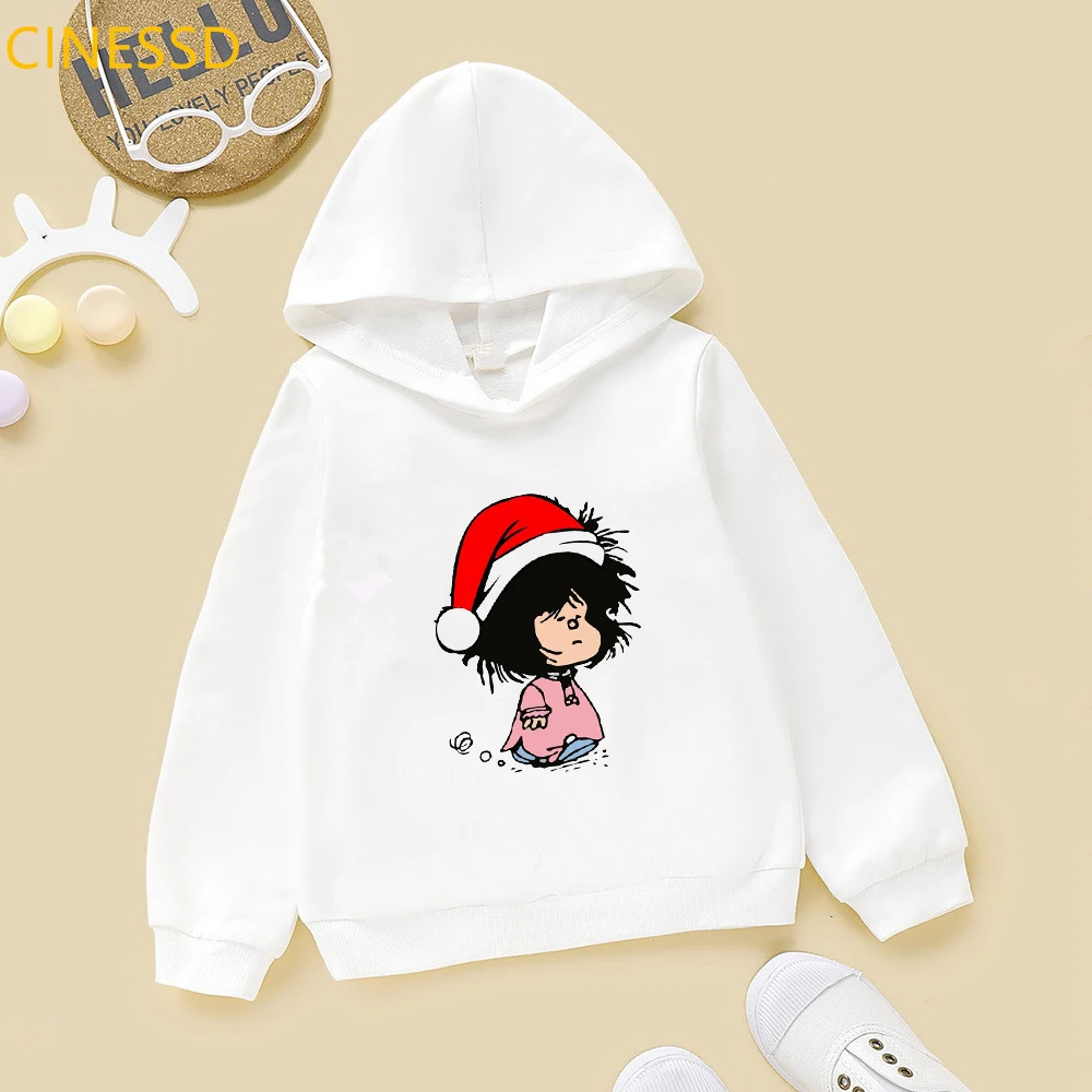 Модный милый свитшот в стиле Харадзюку для детей мультяшный Mafalda 2020 Рождественская плюшевая Толстовка для девочек Забавный принт Детская Повседневная футболка