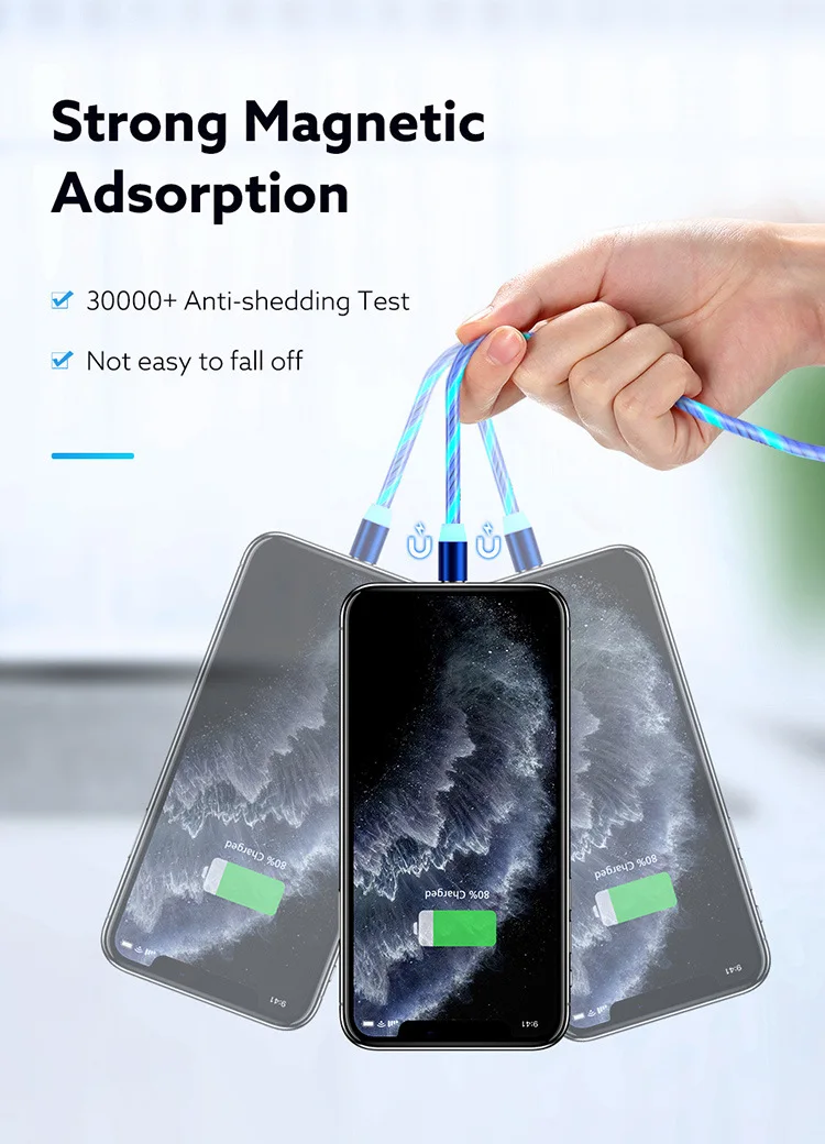 3 In1 Магнитный ток Светящееся освещение Зарядный кабель для мобиль...