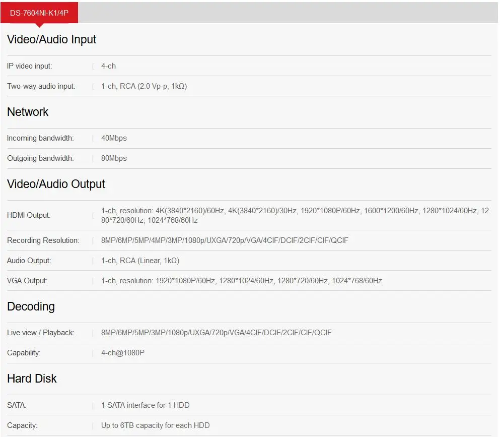 Сетевой видеорегистратор Hikvision DS-7616NI-K216P, английская верс...