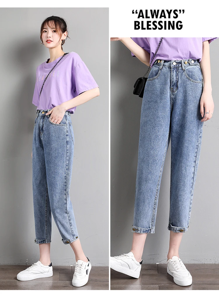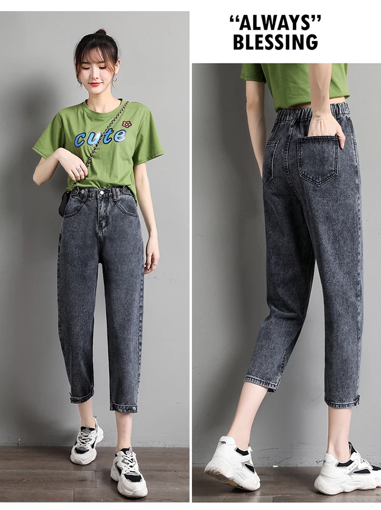 Винтажные размера плюс 5XL женские шаровары джинсы для девочек с ослабленной завышенной талией на весну и осенние комплекты для семьи; Для мам, брюки выглядеть стройной и негабаритных бойфренды