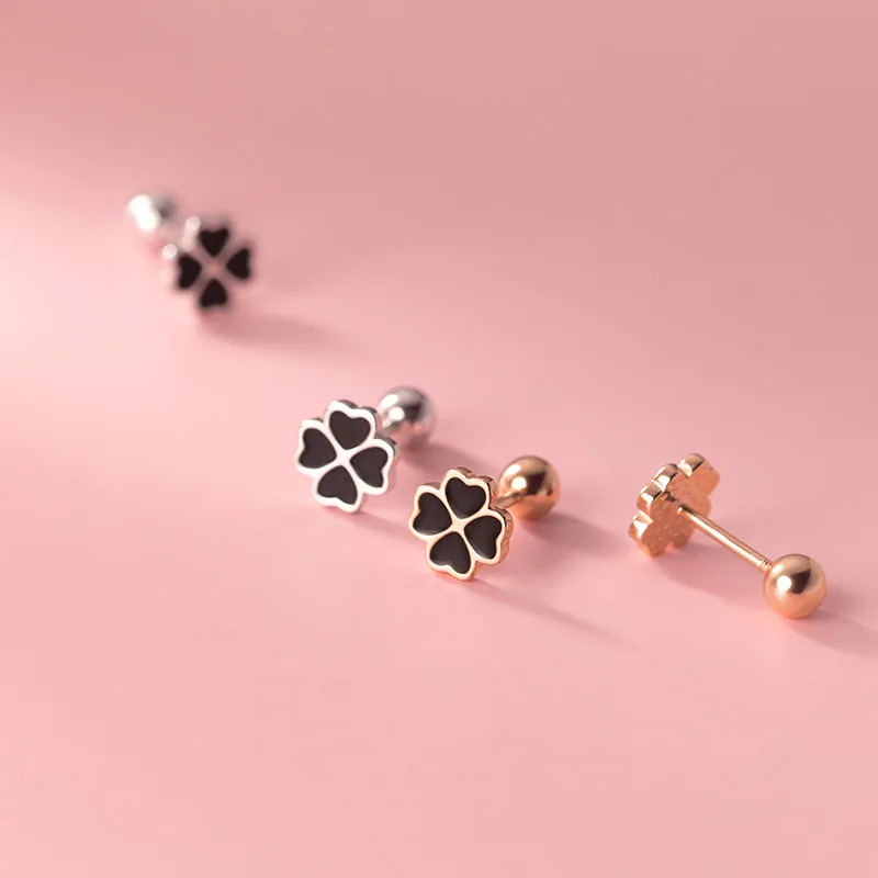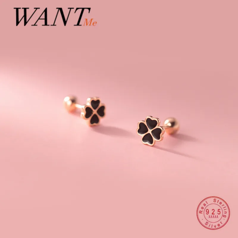 Женские Спиральные серьги-гвоздики WANTME, из стерлингового серебра 925 пробы, с черным цирконием, четырехлистный клевер, ювелирные украшения для вечеринок и свадеб