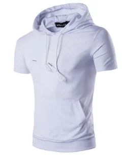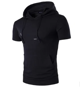 ZOGAA летняя толстовка с коротким рукавом мужская однотонная толстовка с капюшоном Большие карманы 6 цвета пуловеры толстовки Топы S-X