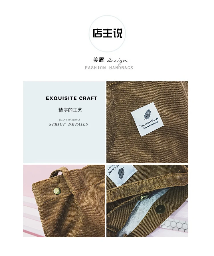 Женская Вельветовая Сумка-тоут, повседневная сумка через плечо, вме...