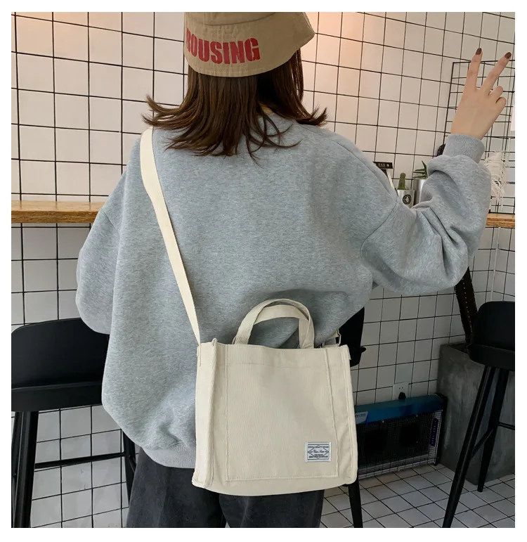 Простая Холщовая Сумка в Корейском стиле для женщин, вместительный школьный мессенджер, Повседневная Ретро сумка на плечо, шоппер, сумка для покупок, 2020