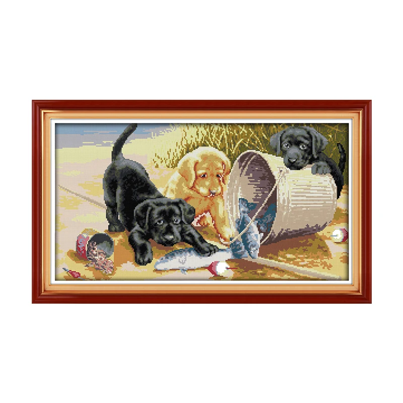 Набор для вышивки крестом Joy Sunday два щенка 14CT 11CT Счетный пр...