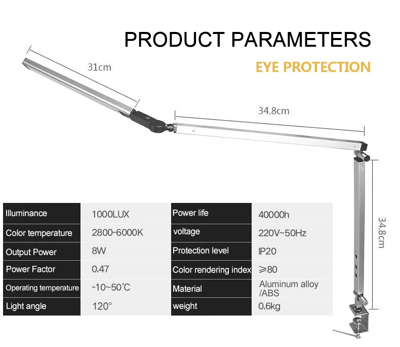 Настольная лампа, светодиодная, с зажимом, 8 Вт