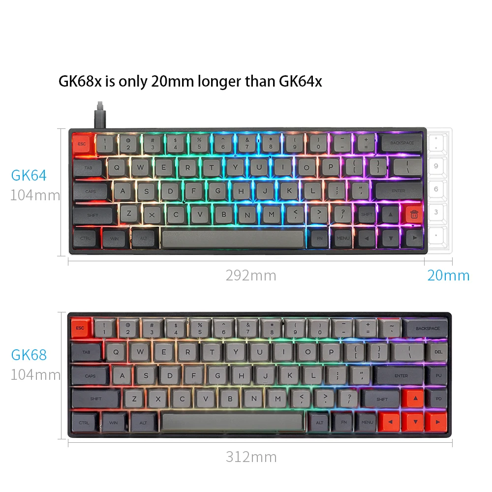 GK68X является проводной версией, которая модернизирована для GK68.PCB черного цвета высокого качества. GK68XS-обновленная версия bluetooth
