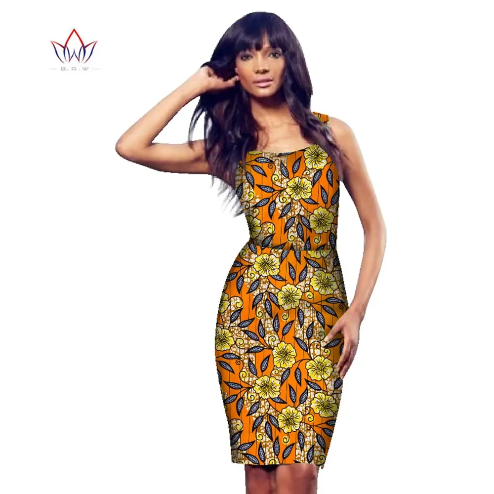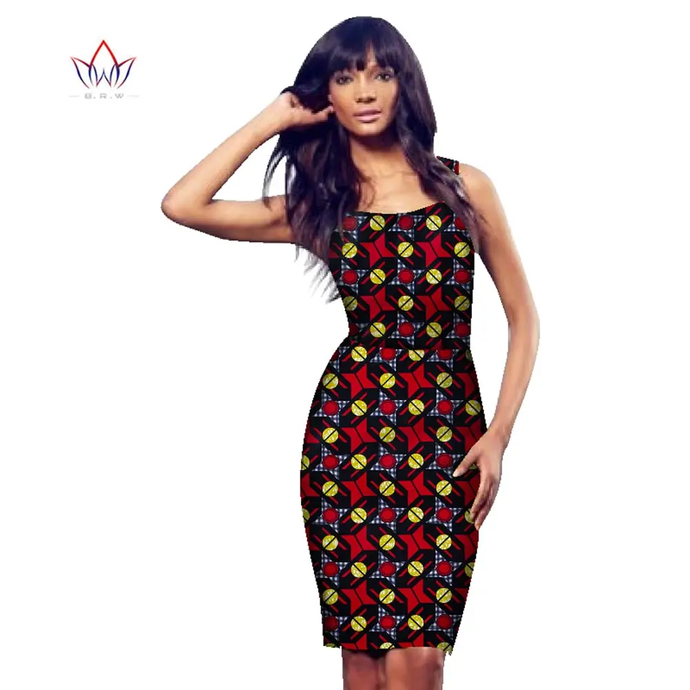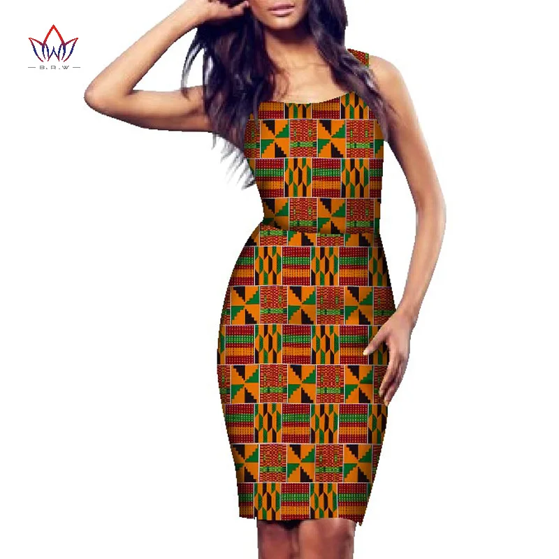 Новинка 2021 года, платья Bintarealwax с принтом Анкары для женщин, женское мини-платье без рукавов с круглым вырезом и Африканским узором по индивидуальному заказу WY466
