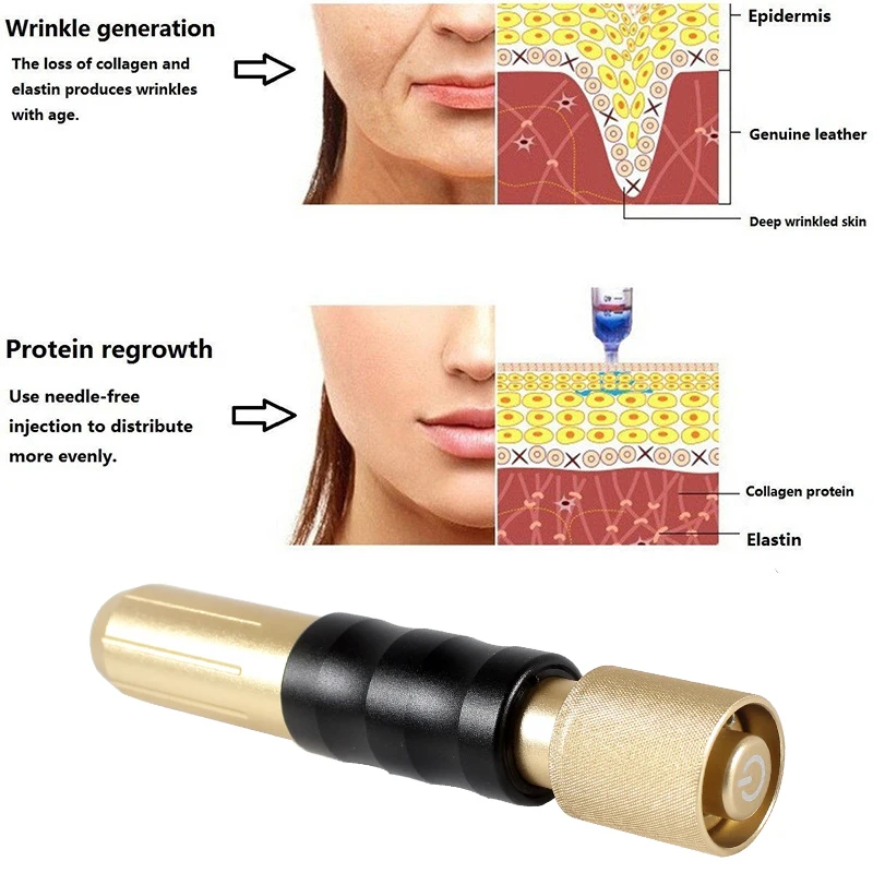 Вращающаяся металлическая ручка с гиалуроновой кислотой, инъекция высокого давления, косметическое оборудование, удаляет морщины, поднимает углы глаз, поднимает губы