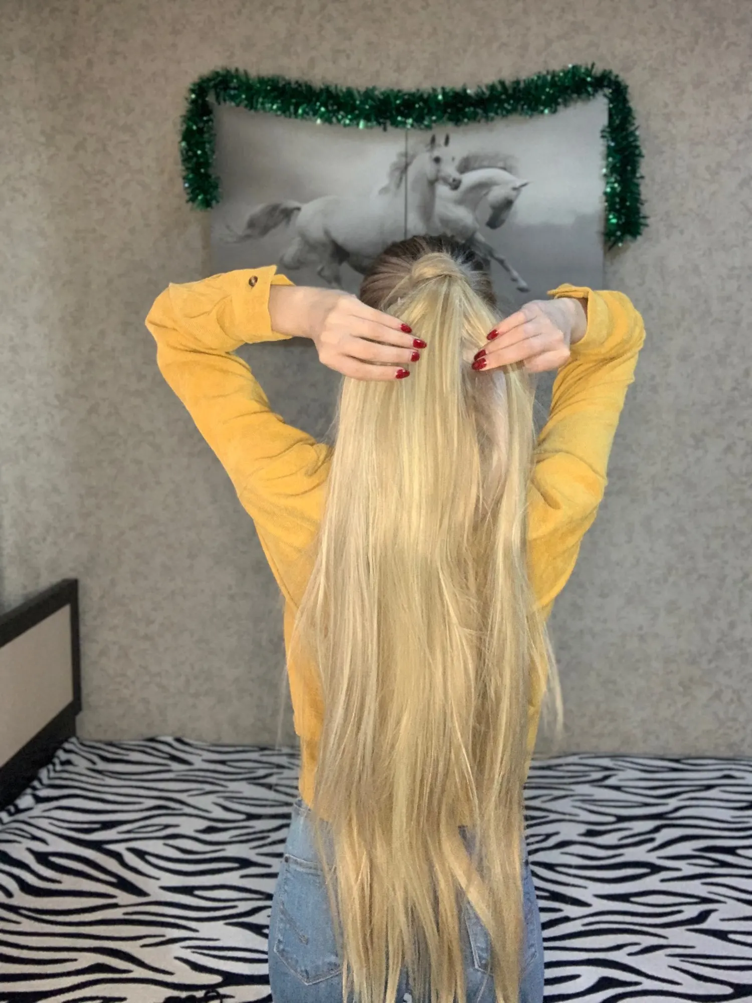 Длинный и густой хвост. Оттенок: 16H613 Цвет идёт с небольшим мелированием, приятный и красивый цвет. Сам хвост идёт на липкой ленте, в комплекте резинка и две невидимки. Крепится легко, держится крепко в течении дня. Такой красивый хвостик подойдёт на мероприятие или вечеринку. Отличное Качество товара, волосы мягкие. Длина хвоста 81 см. Есть так же и короче: 51 61 76 81см Доставка быстрая. Рекомендую!