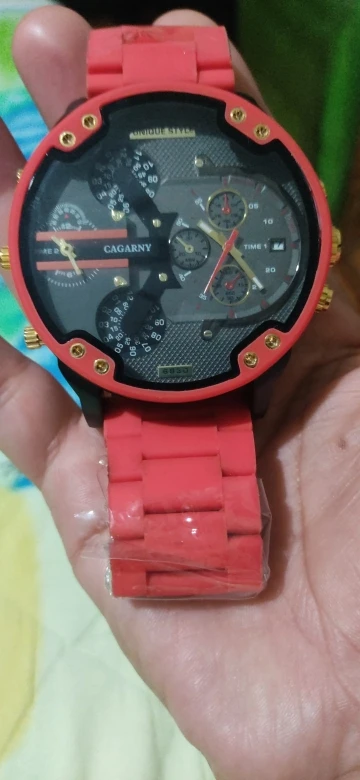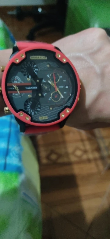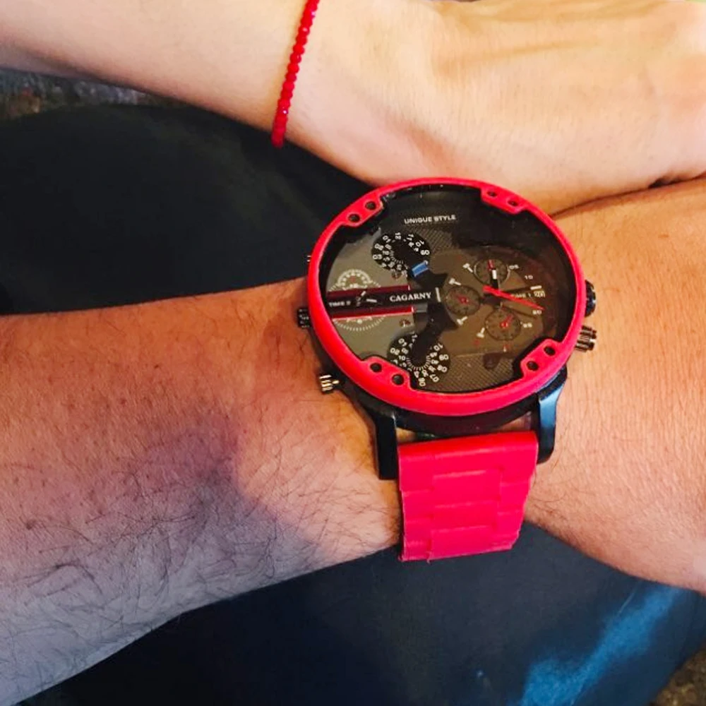 Наручные часы Мужские кварцевые с двойным циферблатом, из стали и Красного силикона, 2021
