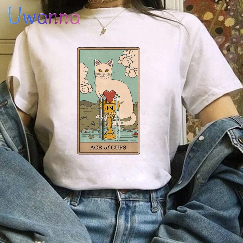 Модные женские футболки с рисунком кошки Таро, забавная Милая женская одежда с рисунком, женская футболка с графическим рисунком, белая Повседневная летняя футболка