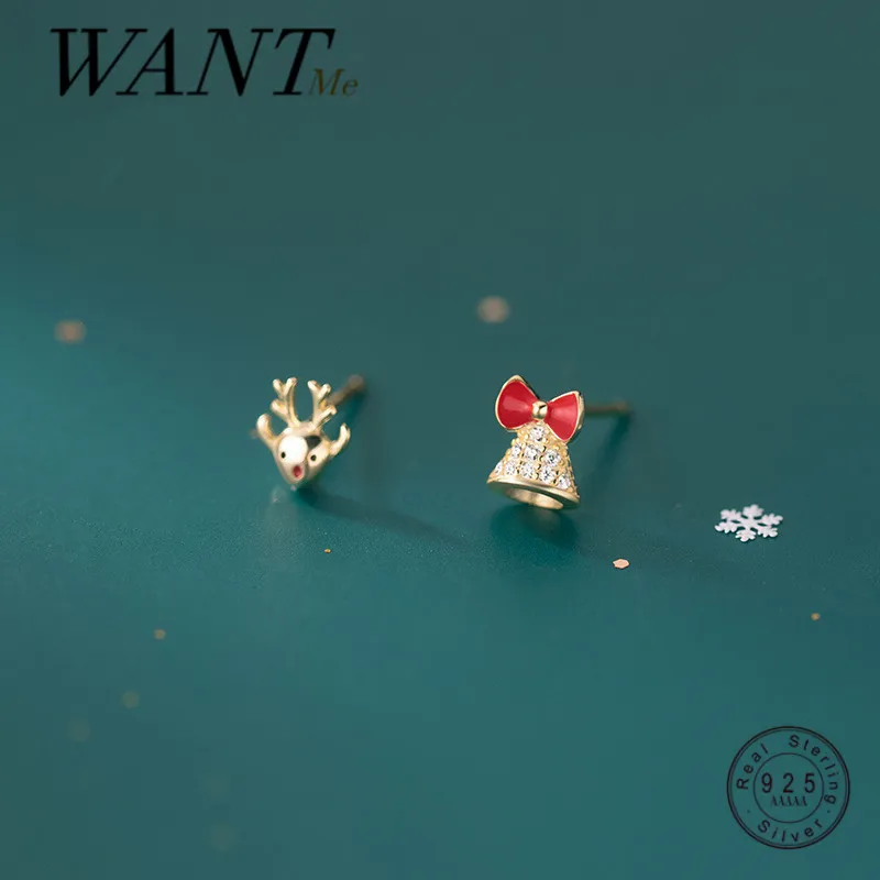 WANTME милые, с милой аппликацией в виде животного Золотой Лось колокол Хэллоуин серьги-гвоздики для женщин из натуральной кожи 925 стерлингового серебра Вечерние Рождественский подарок ювелирных изделий