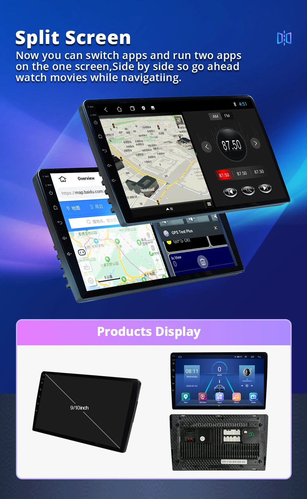 2 DIN 9-дюймовый Android 9.0 GPS навигатор сенсорный экран четырехъ...