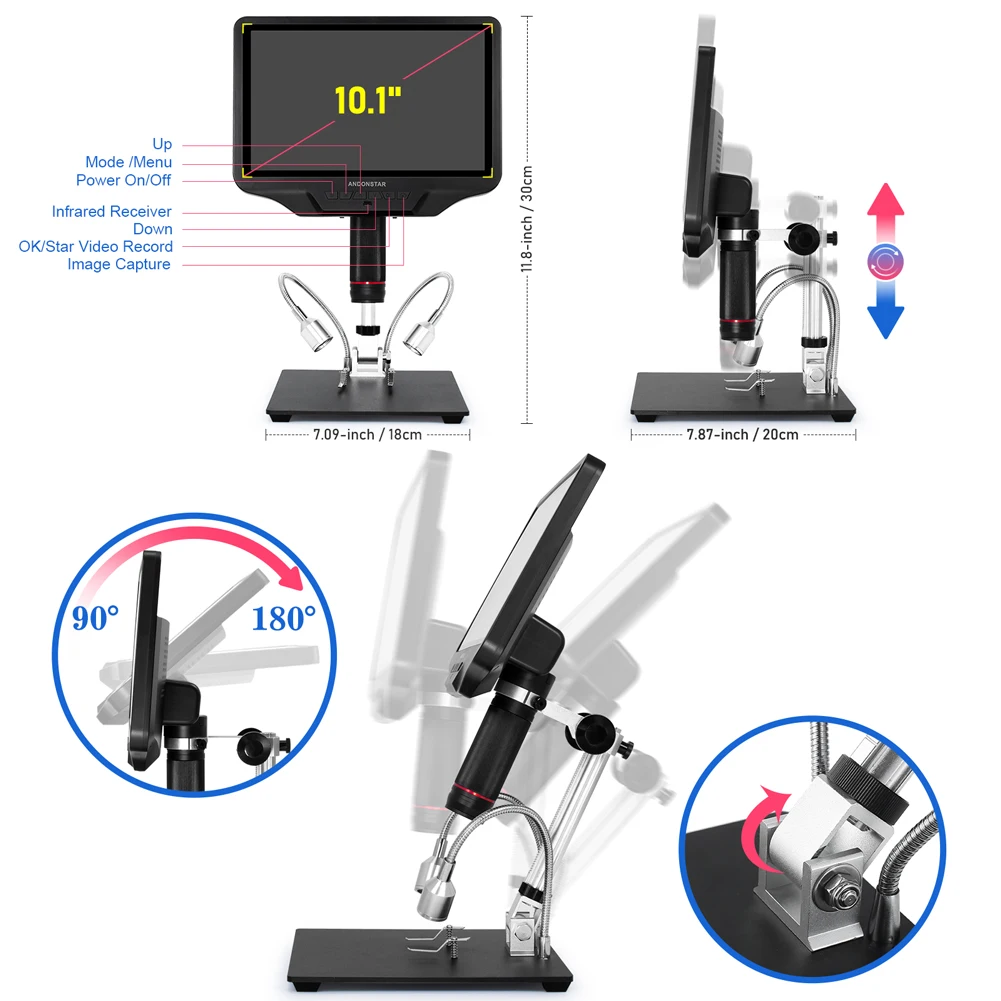 Цифровой микроскоп Andonstar AD409, 10,1 дюйма, HDMI, Wi-Fi, с программным обеспечением для ремонта печатных плат, припоя, для ремонта SMT, SMD и телефонов