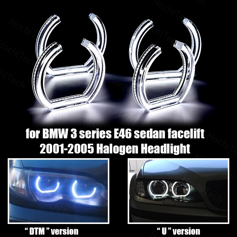 DTM стиль DRL Cut Стиль светодиодный ангельский глаз комплект белый для BMW 3 серии E46 Седан Facelift 2001-05 галогенные фары Кристальные ангельские глазки